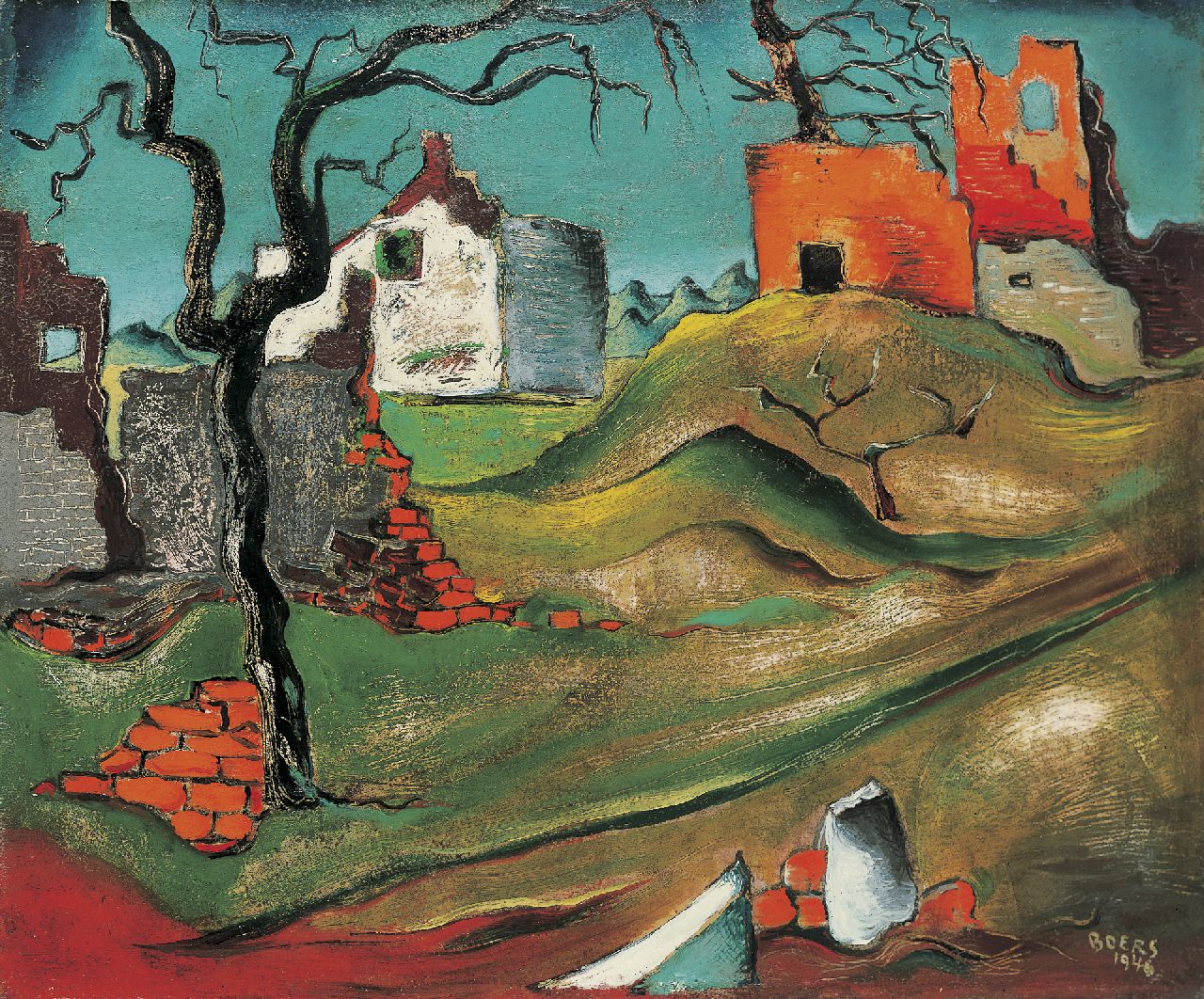olieverf op schildersboard 46,0 x 55,0 cm, gesigneerd rechtsonder en gedateerd 1946