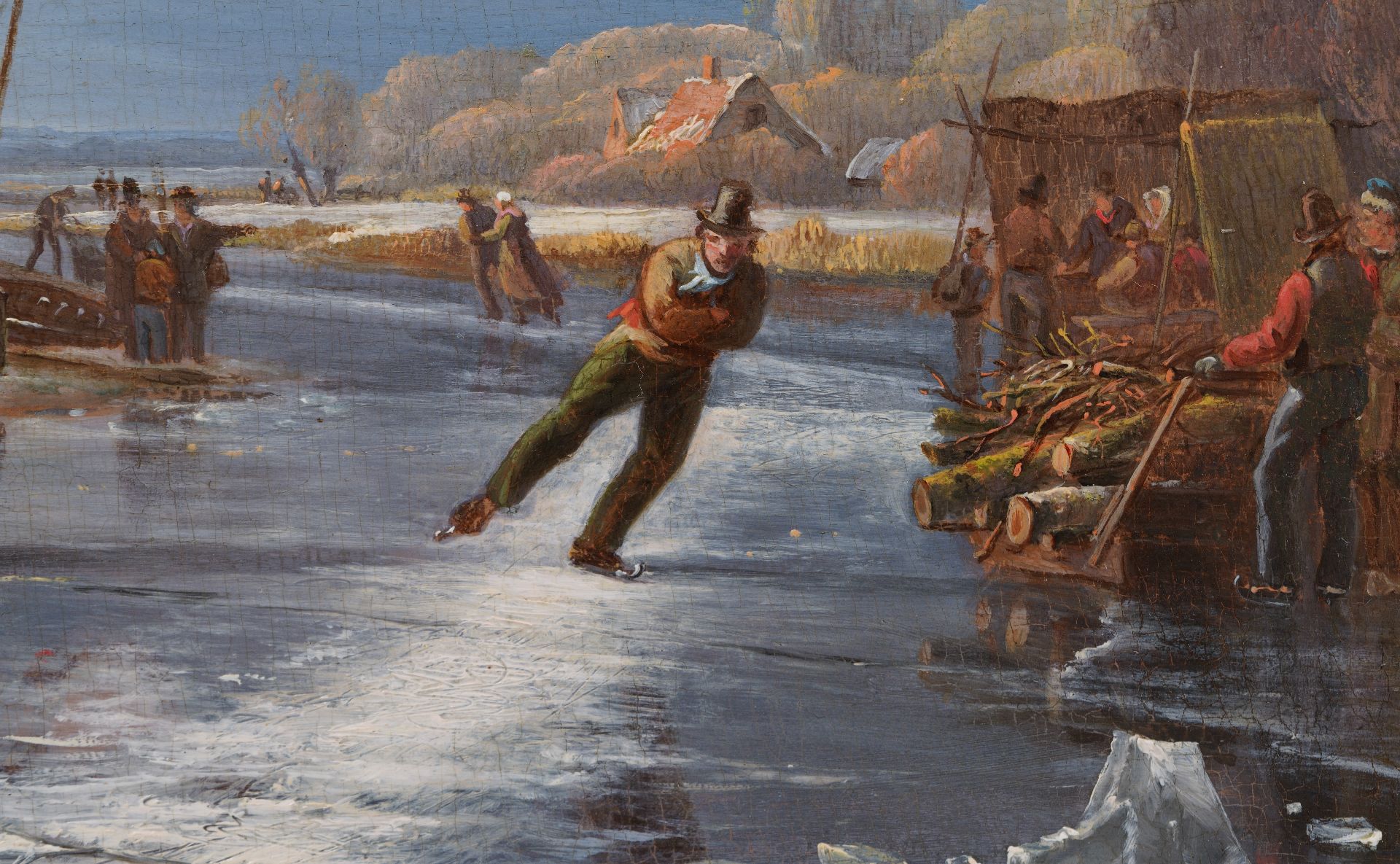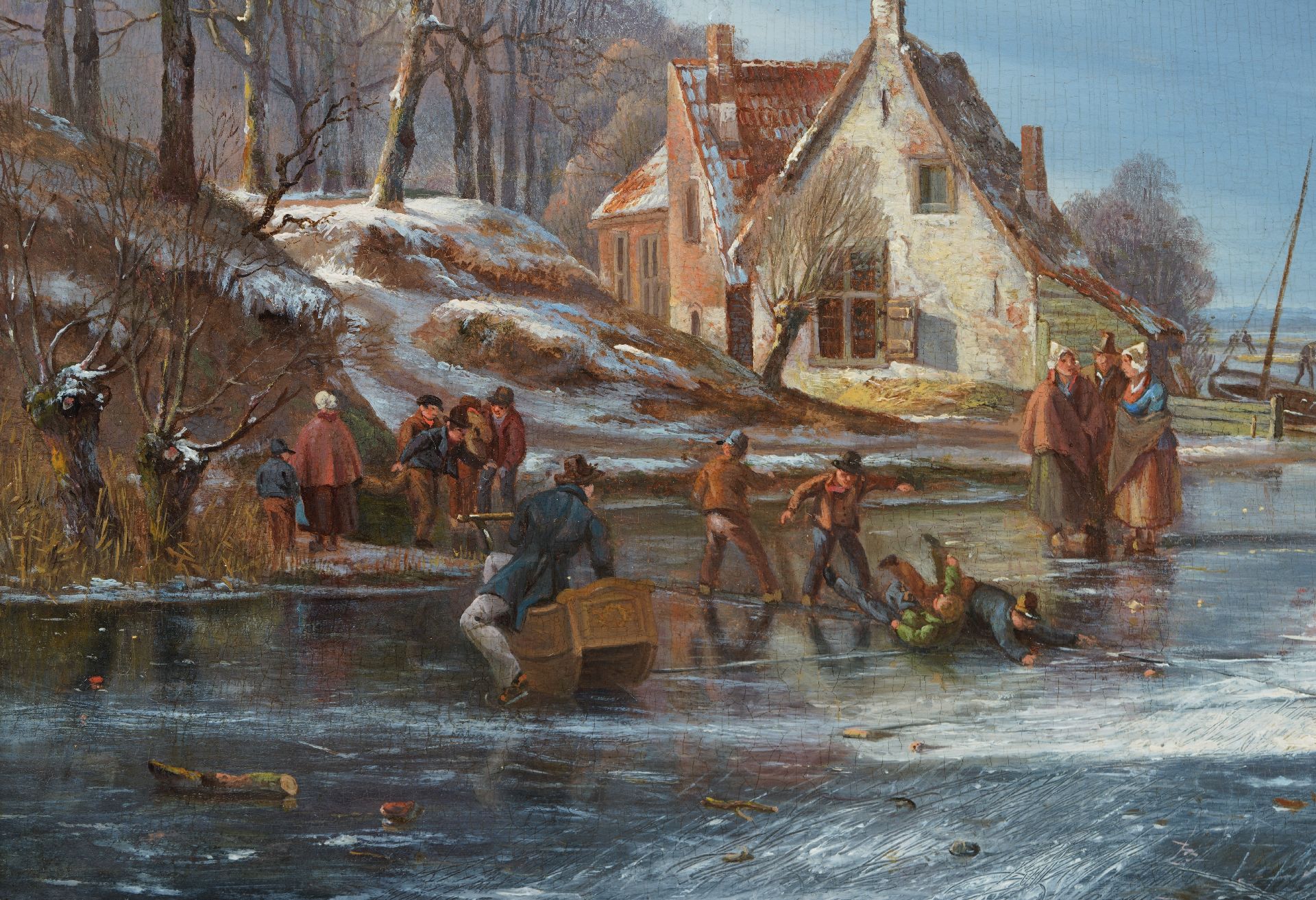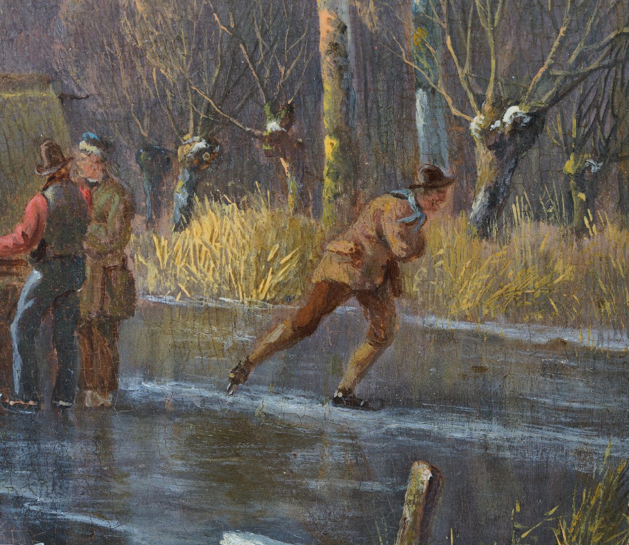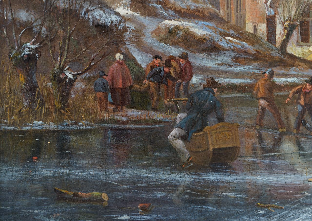 Frans Breuhaus de Groot kunstwerk • schilderij • te koop Wintergezicht met schaatsers en jongens op het ijs
