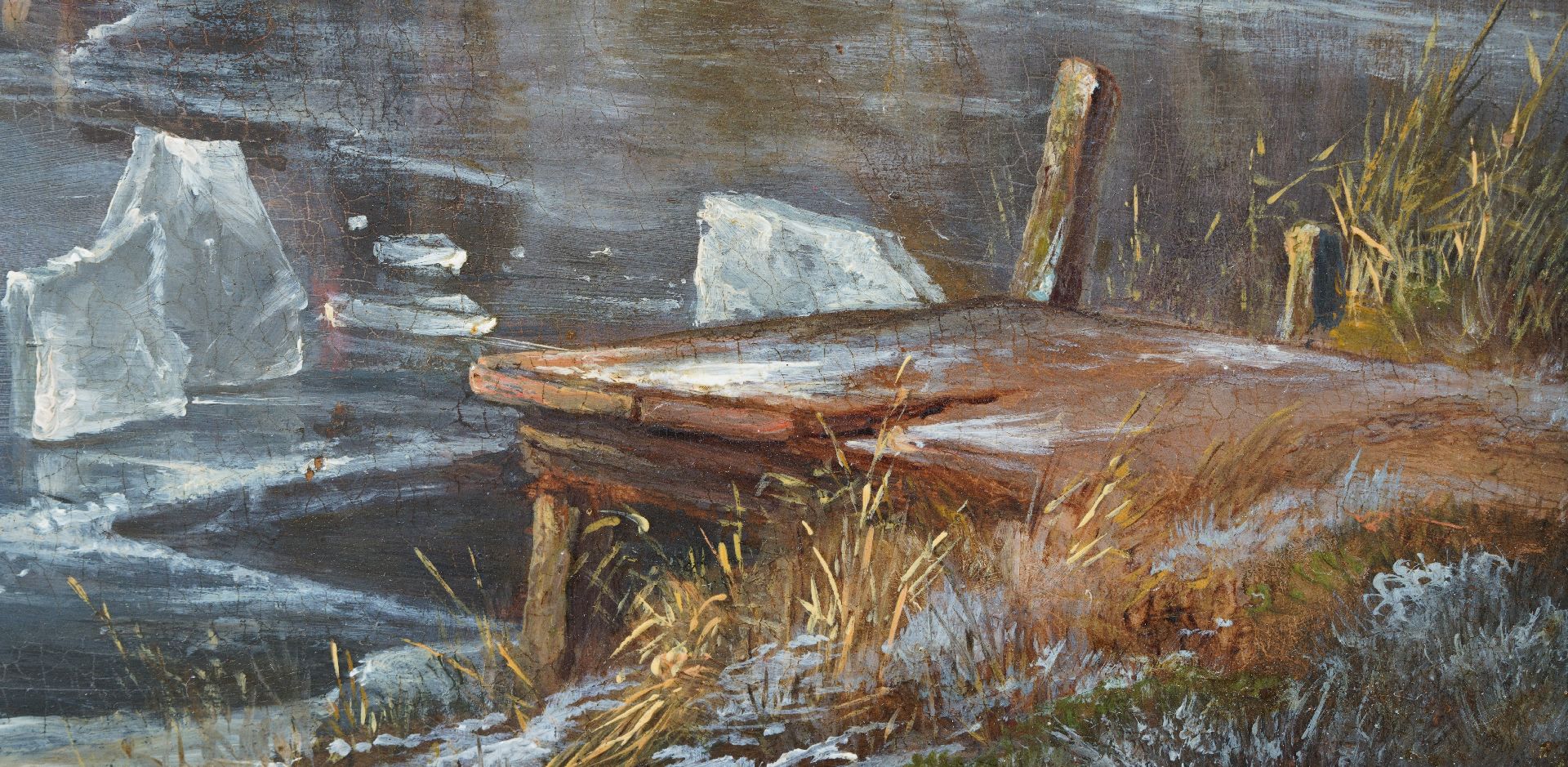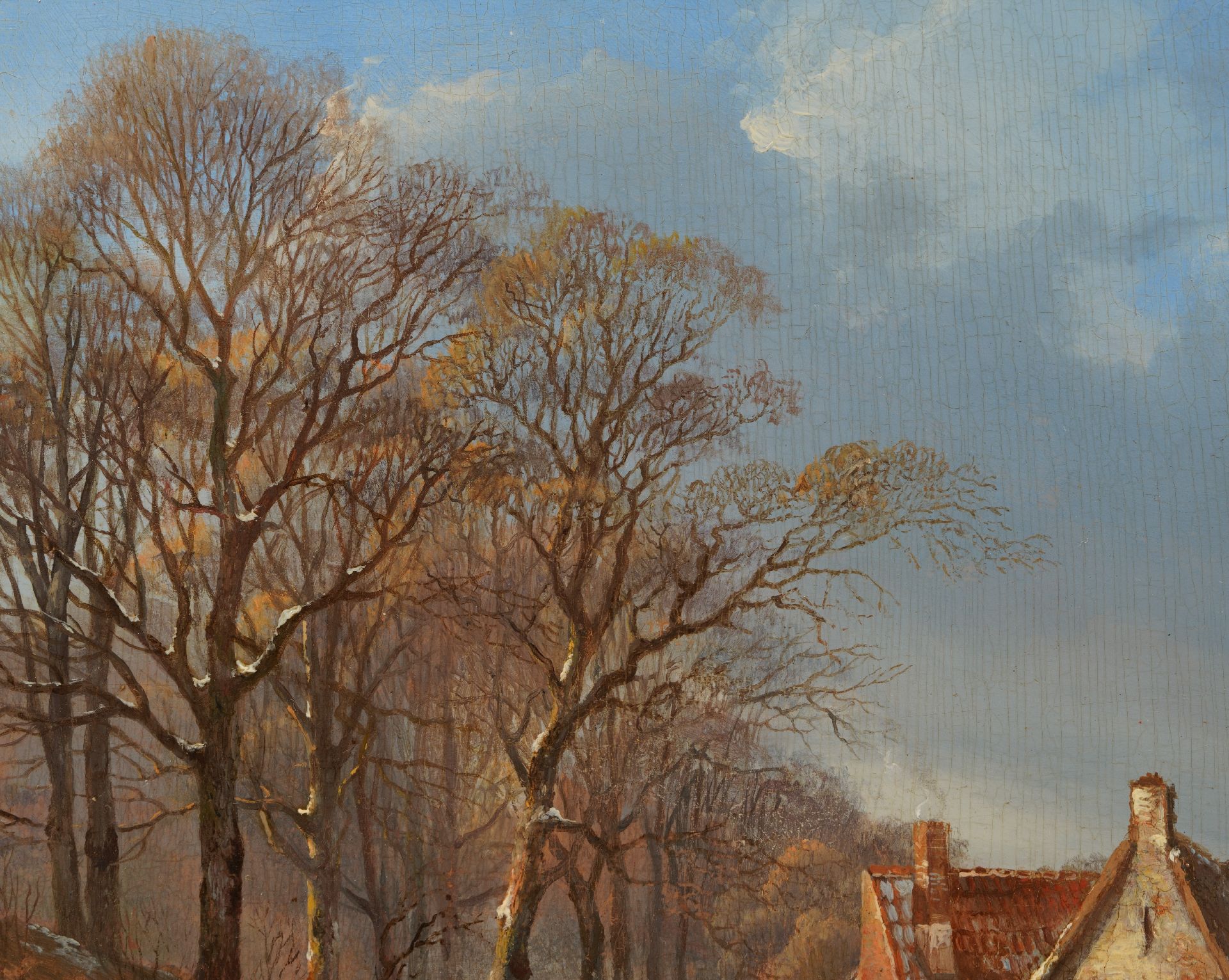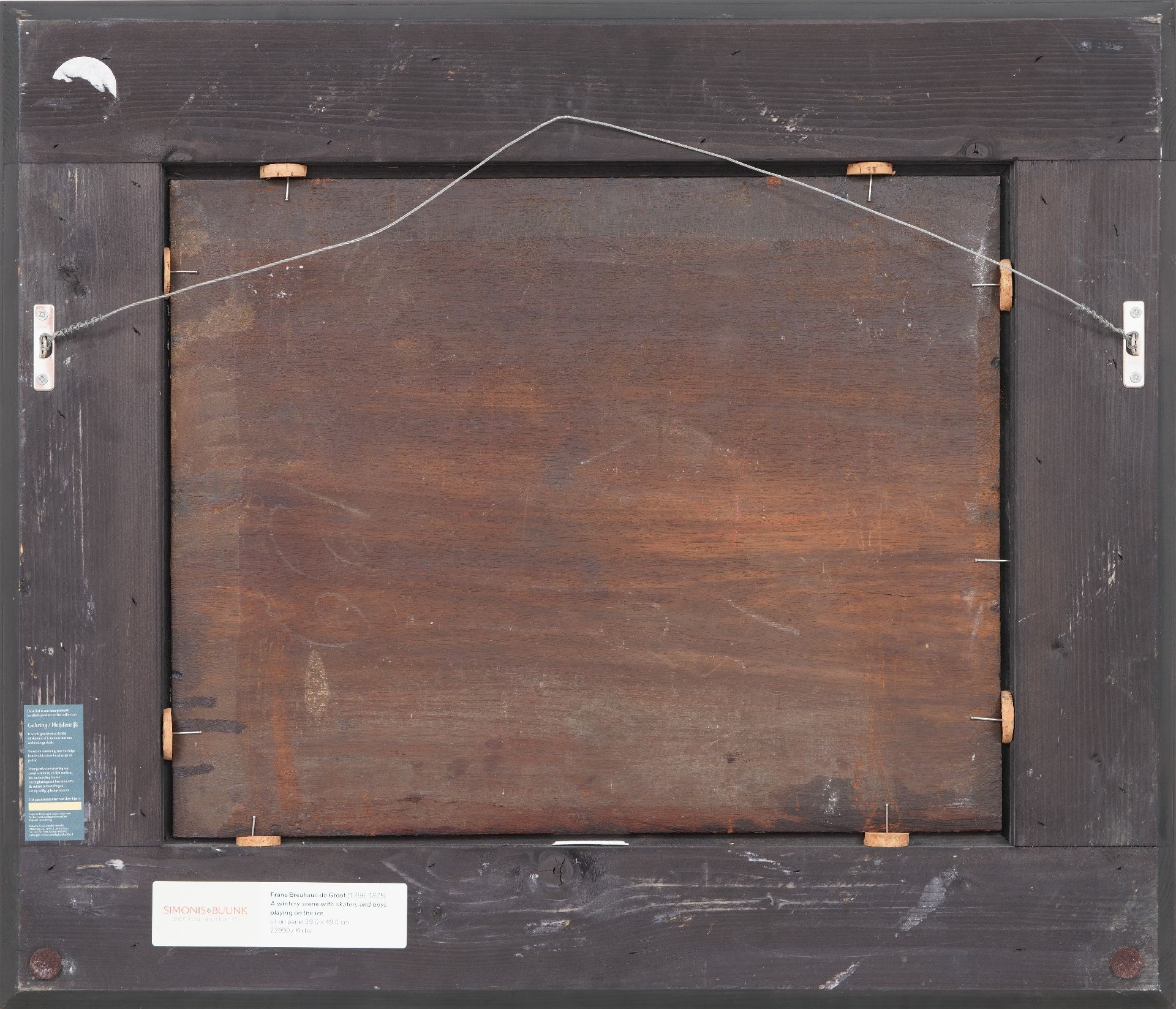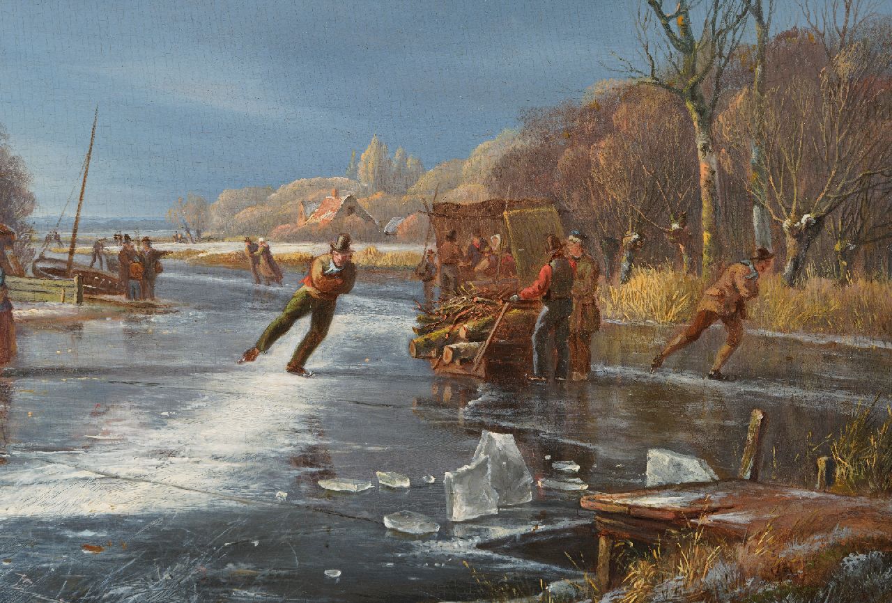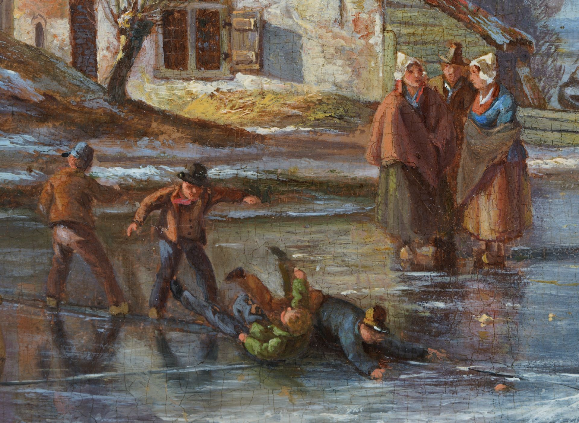 Frans Breuhaus de Groot kunstwerk • schilderij • te koop Wintergezicht met schaatsers en jongens op het ijs