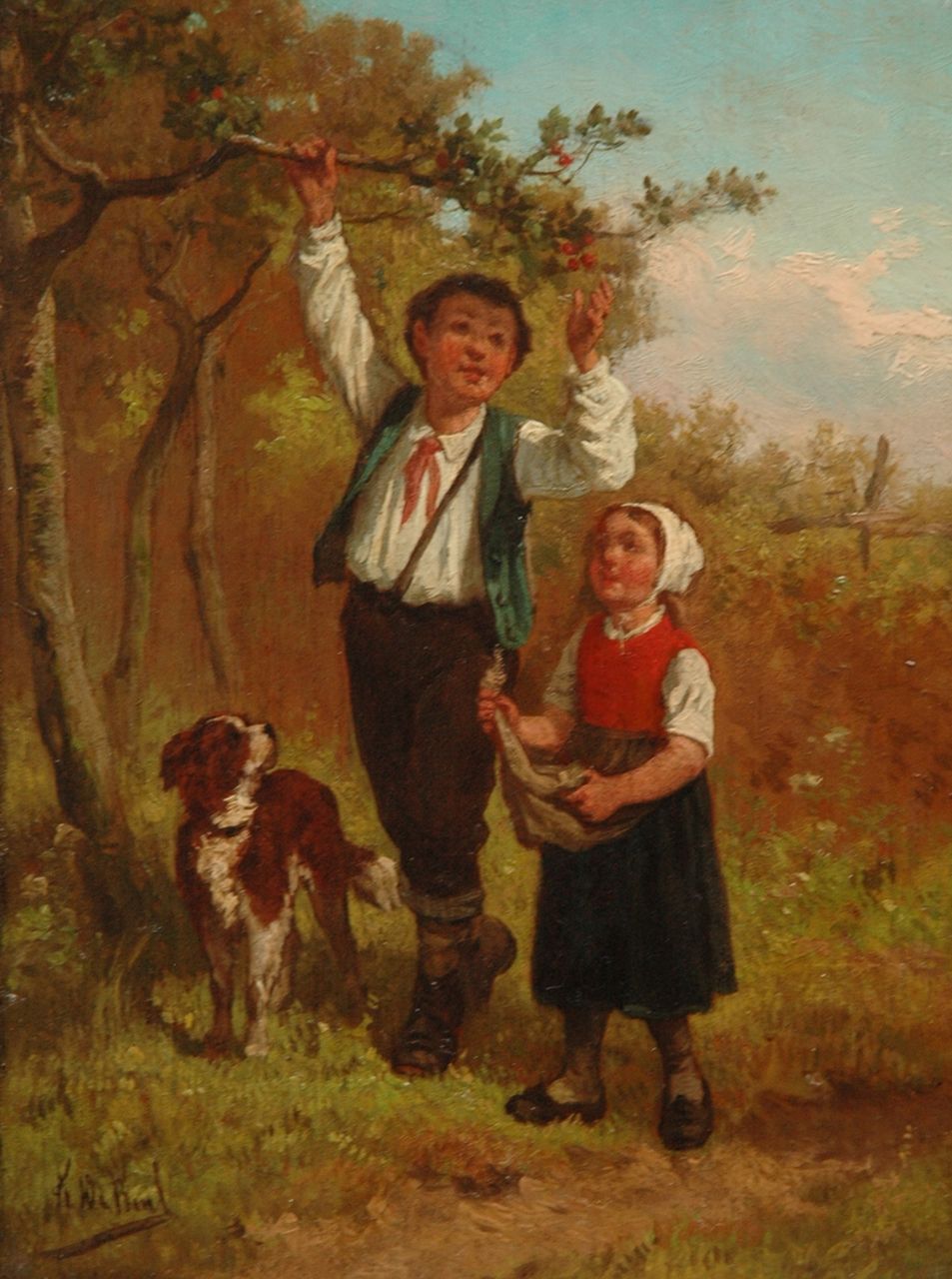 Frans de Beul kunstwerk • schilderij • voorheen te koop Kersen plukken