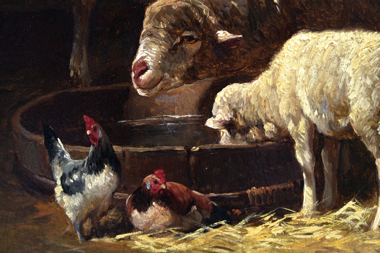 Frans de Beul kunstwerk • schilderij • voorheen te koop Schapen in de stal (alleen tezamen)