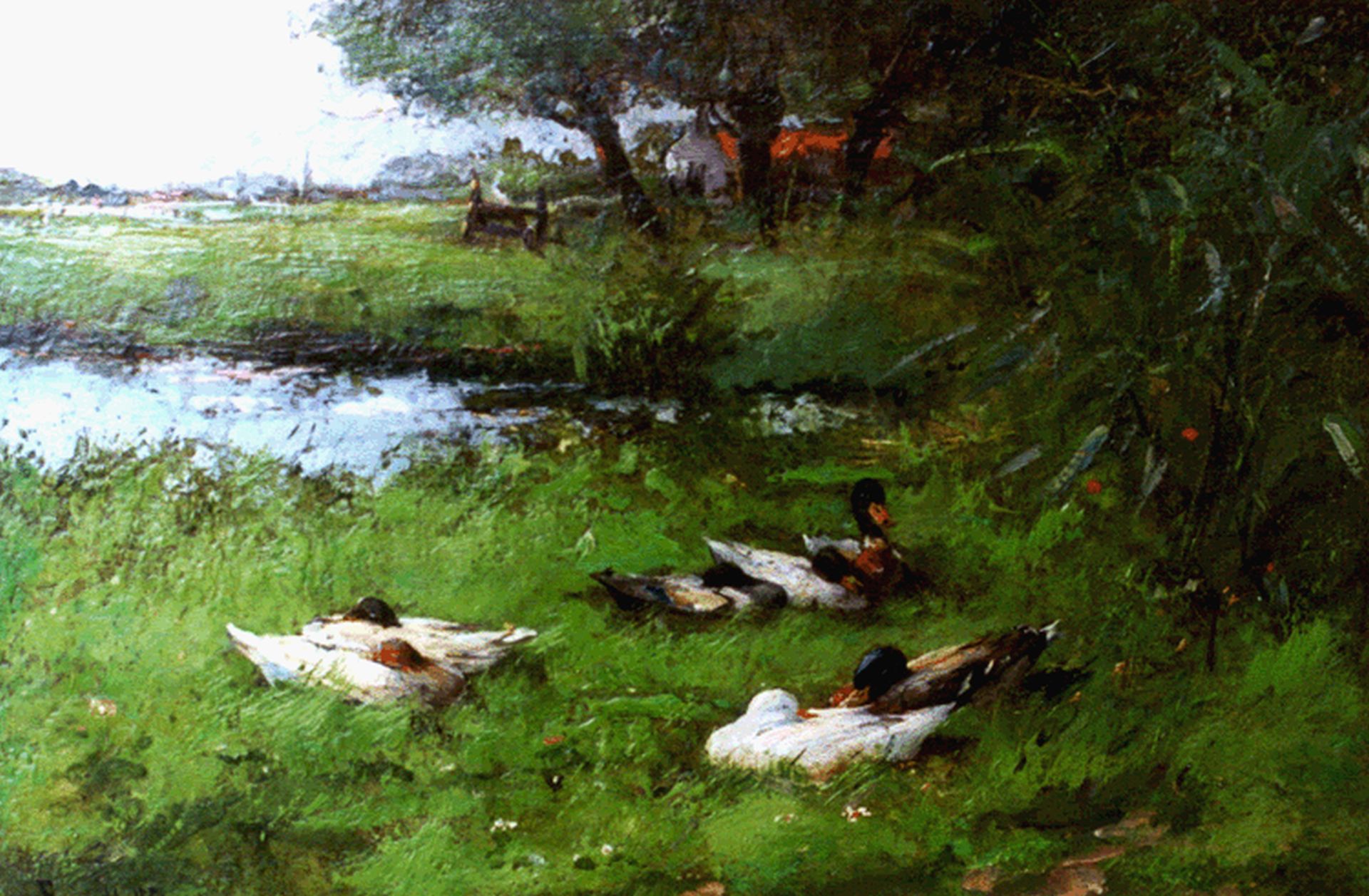 Frans Helfferrich kunstwerk • schilderij • voorheen te koop Eenden bij een sloot