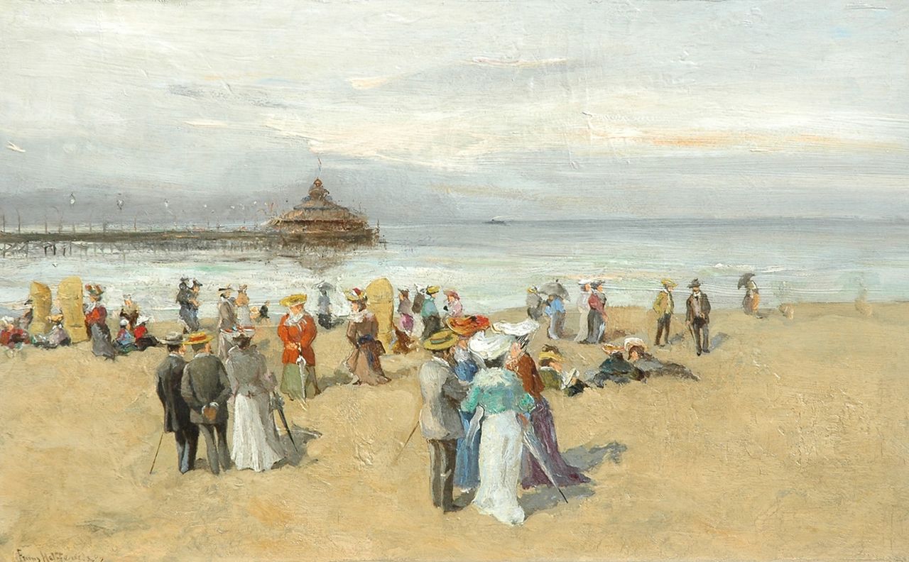 Frans Helfferrich kunstwerk • schilderij • voorheen te koop Flaneren op het strand van Scheveningen
