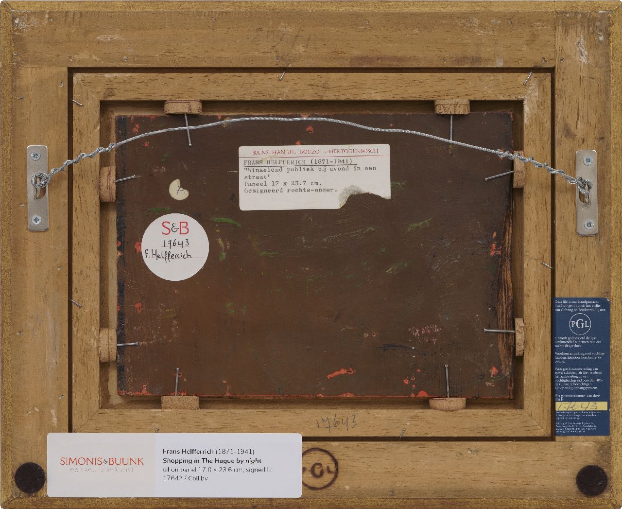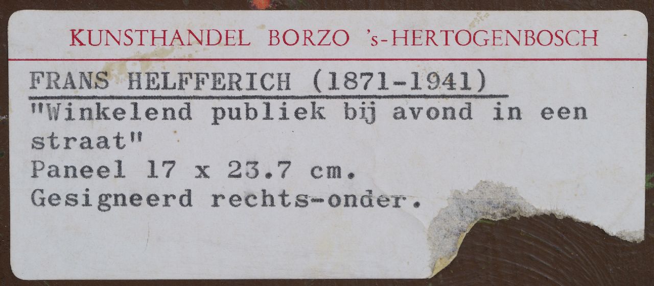 Frans Helfferrich kunstwerk • schilderij • voorheen te koop Haagse winkelstraat bij avond