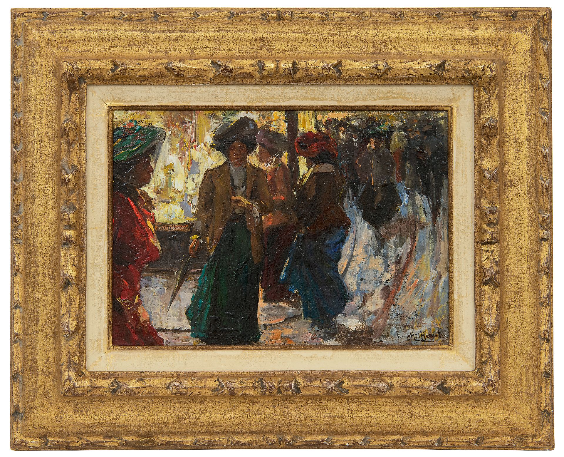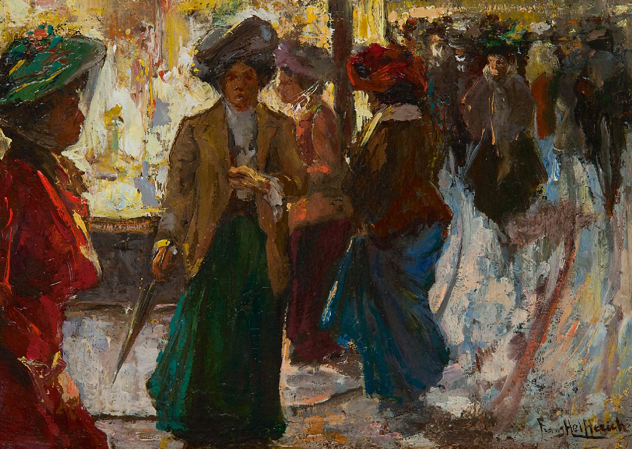 De impressionist Frans Helfferich woonde en werkte het grootste deel van zijn leven in Den Haag. Daar volgde hij een opleiding aan de Haagse akademie en ontwikkelde hij zich tot een schilder van landschappen in de trant van de Haagse School. Opvallend zijn de vlot-impressionistische voorstellingen van het moderne stadsleven in de hofstad, veel 'frivoler' en anders van sfeer dan de stadsportretten van zijn zes jaar oudere stadgenoot Floris Arntzenius. In veel van de winkelstraten die hij schilderde speelt het electrische licht van de etalages, dat rond 1900 zijn intrede deed, een belangrijke rol. Het stond voor het moderne leven en straalde welvaart en luxe uit.