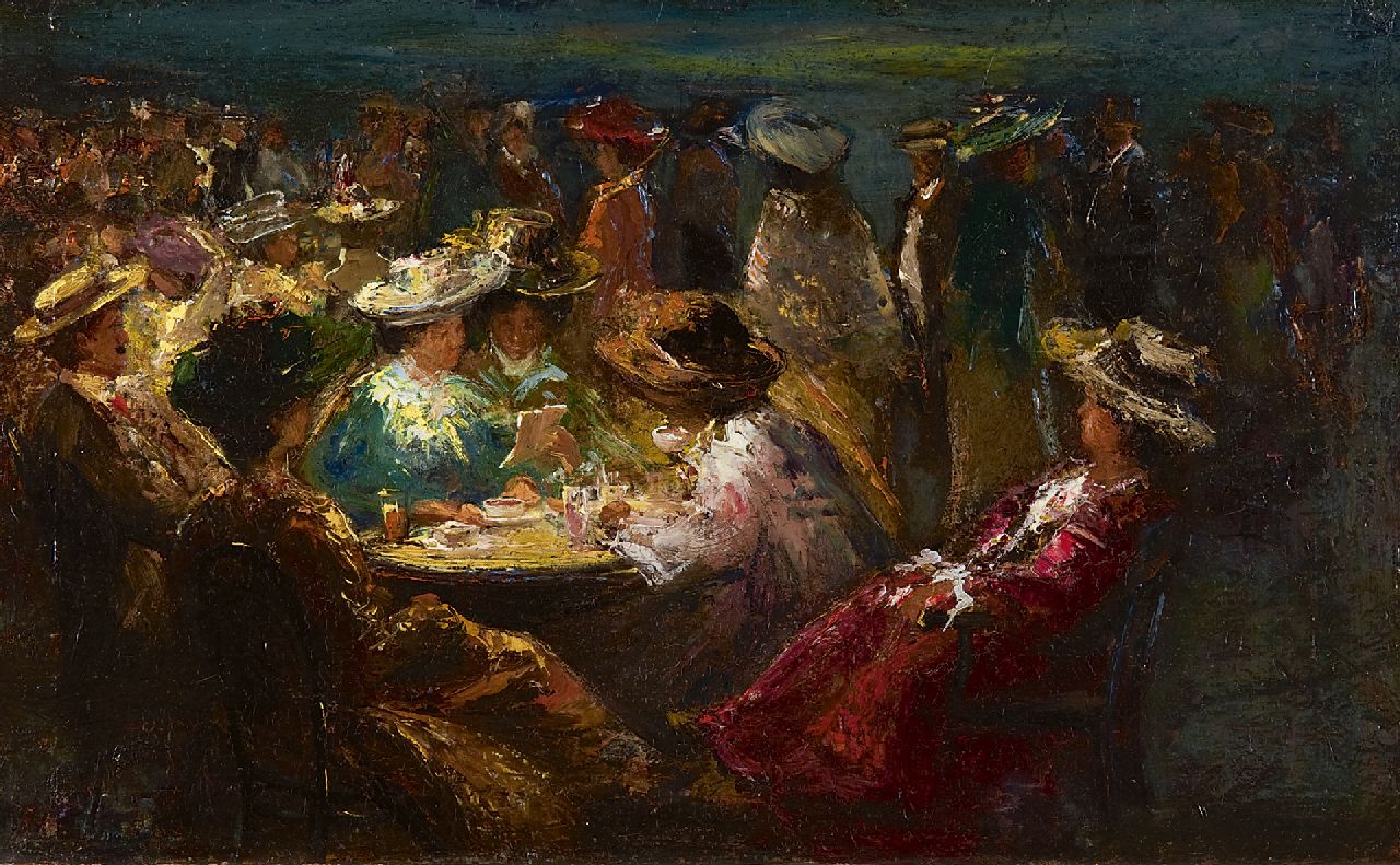 Frans Helfferrich kunstwerk • schilderij • voorheen te koop Terras bij avond