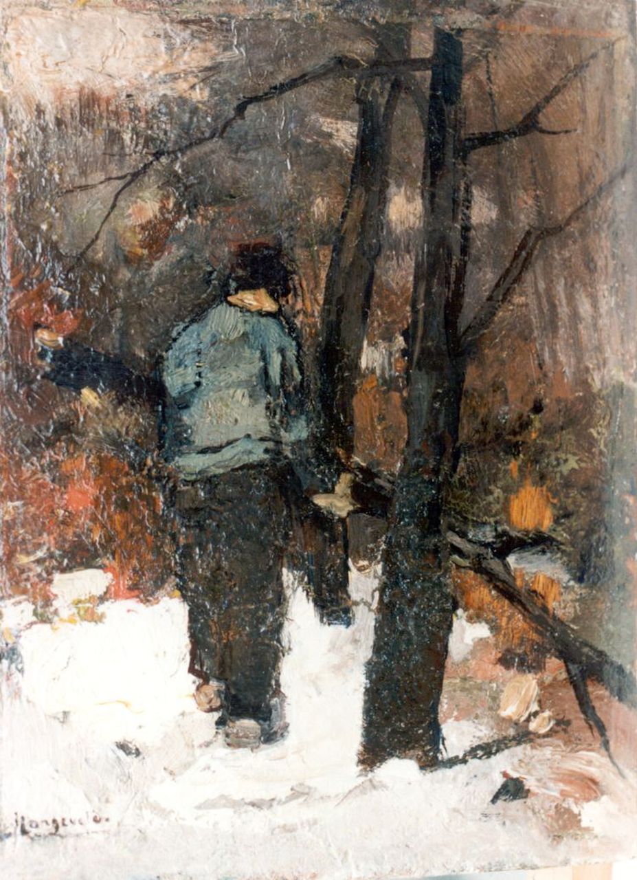 Frans Langeveld kunstwerk • schilderij • voorheen te koop Houtsprokkelaar