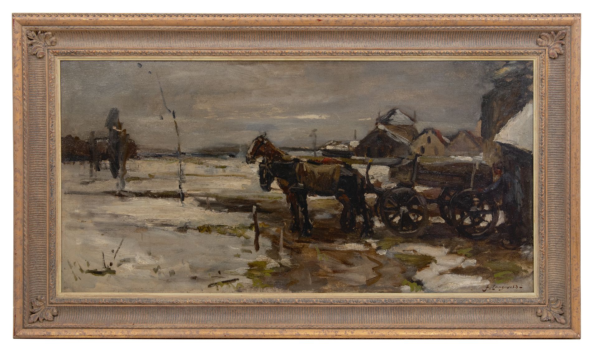 Frans Langeveld kunstwerk • schilderij • te koop Paard en wagen in de sneeuw