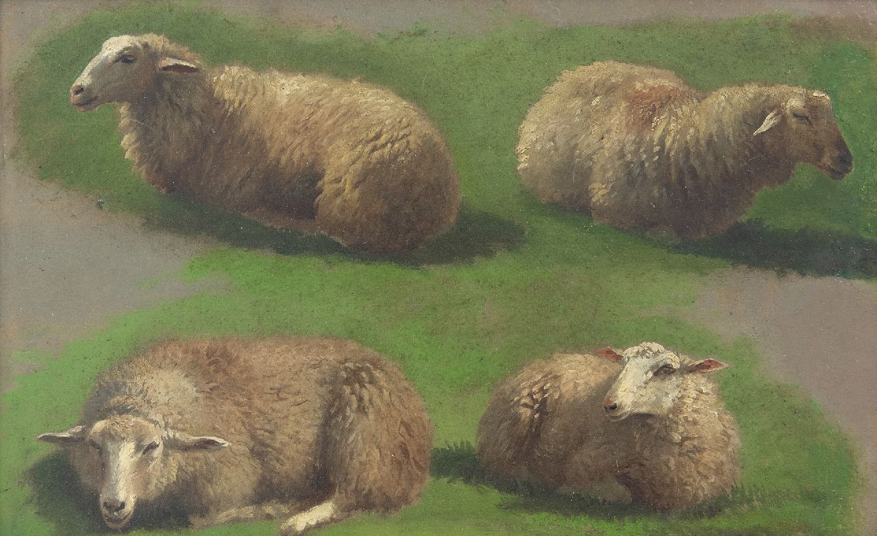 Frans Lebret kunstwerk • schilderij • voorheen te koop Studie van schapen