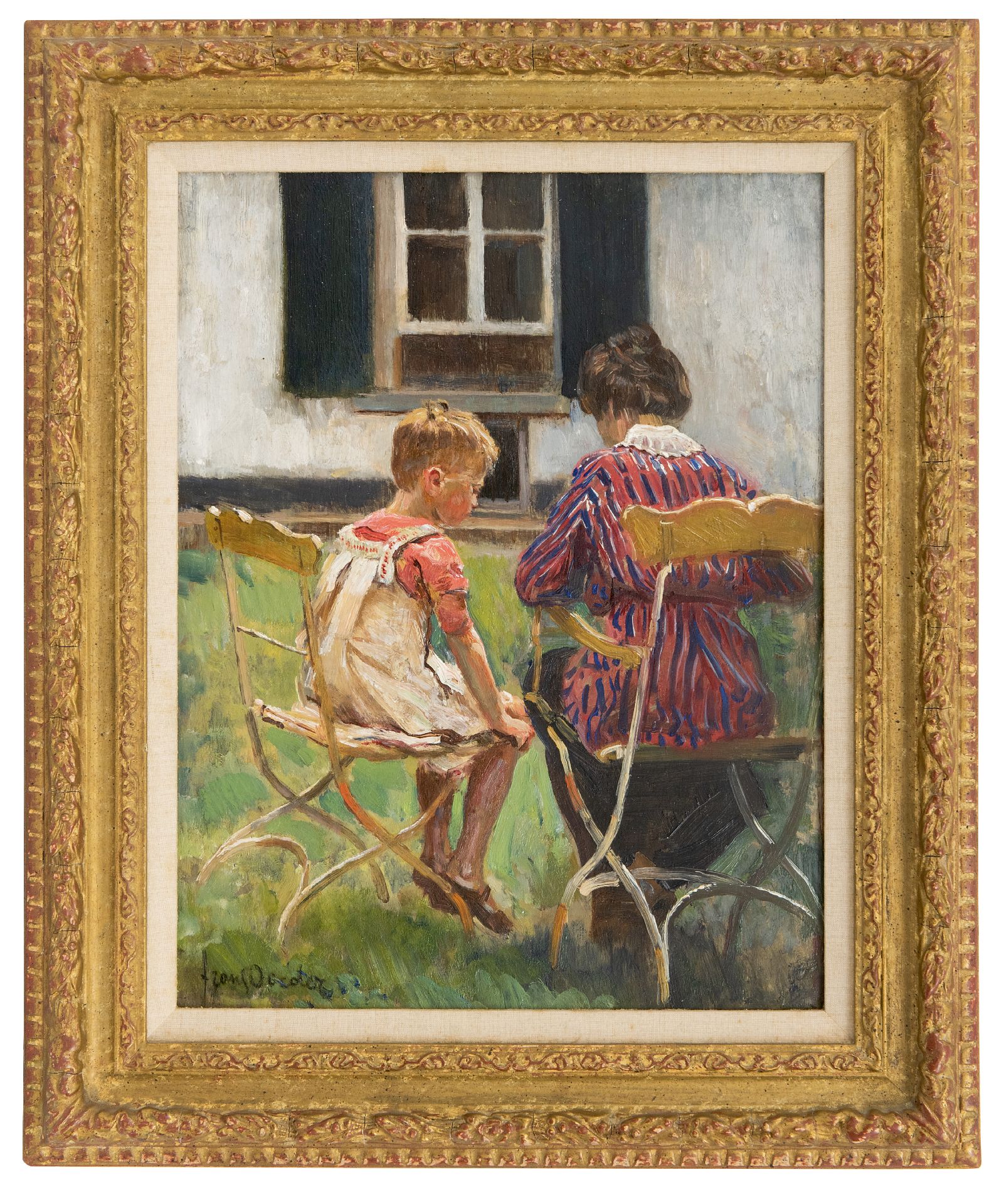 Frans Oerder kunstwerk • schilderij • voorheen te koop Moeder en dochter in de tuin