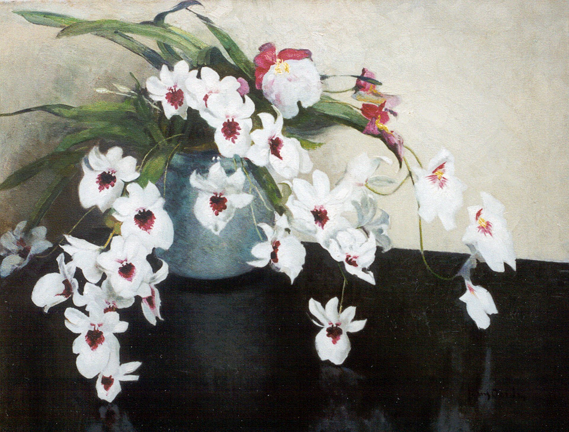 Frans Oerder kunstwerk • schilderij • voorheen te koop Stilleven van orchideeën in een pot