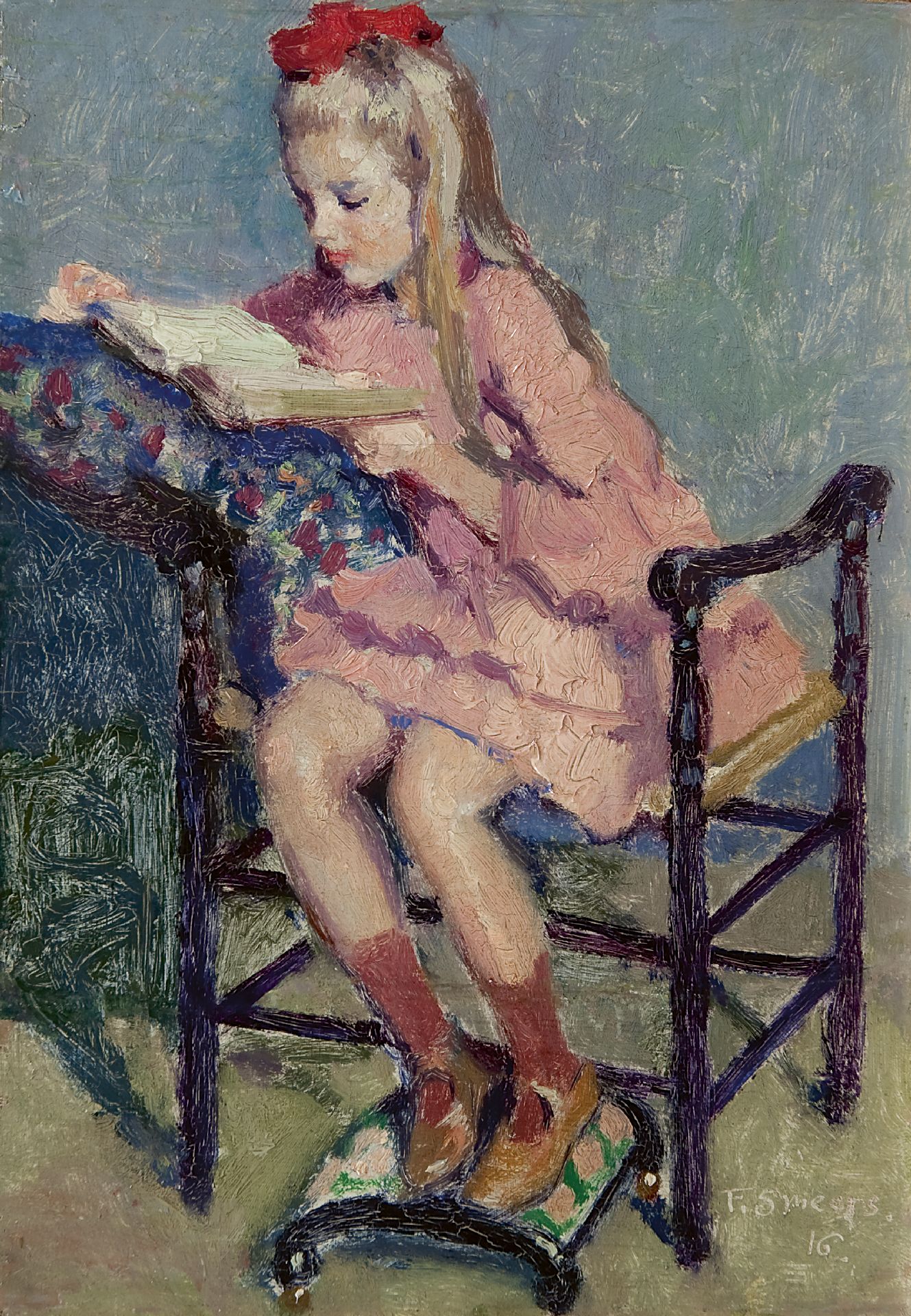 Frans Smeers kunstwerk • schilderij • voorheen te koop Lezend meisje