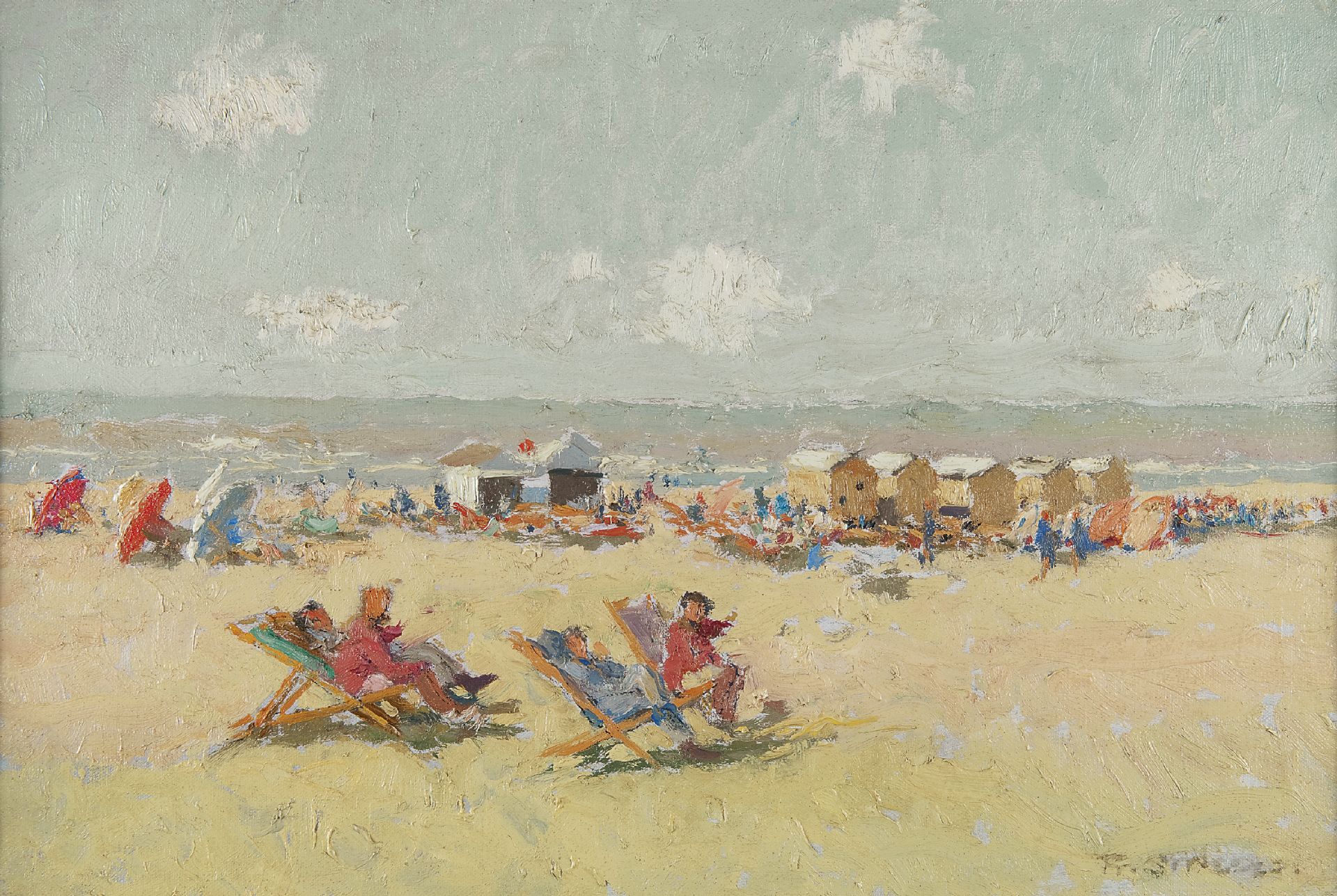 Frans Smeers kunstwerk • schilderij • voorheen te koop Op het strand