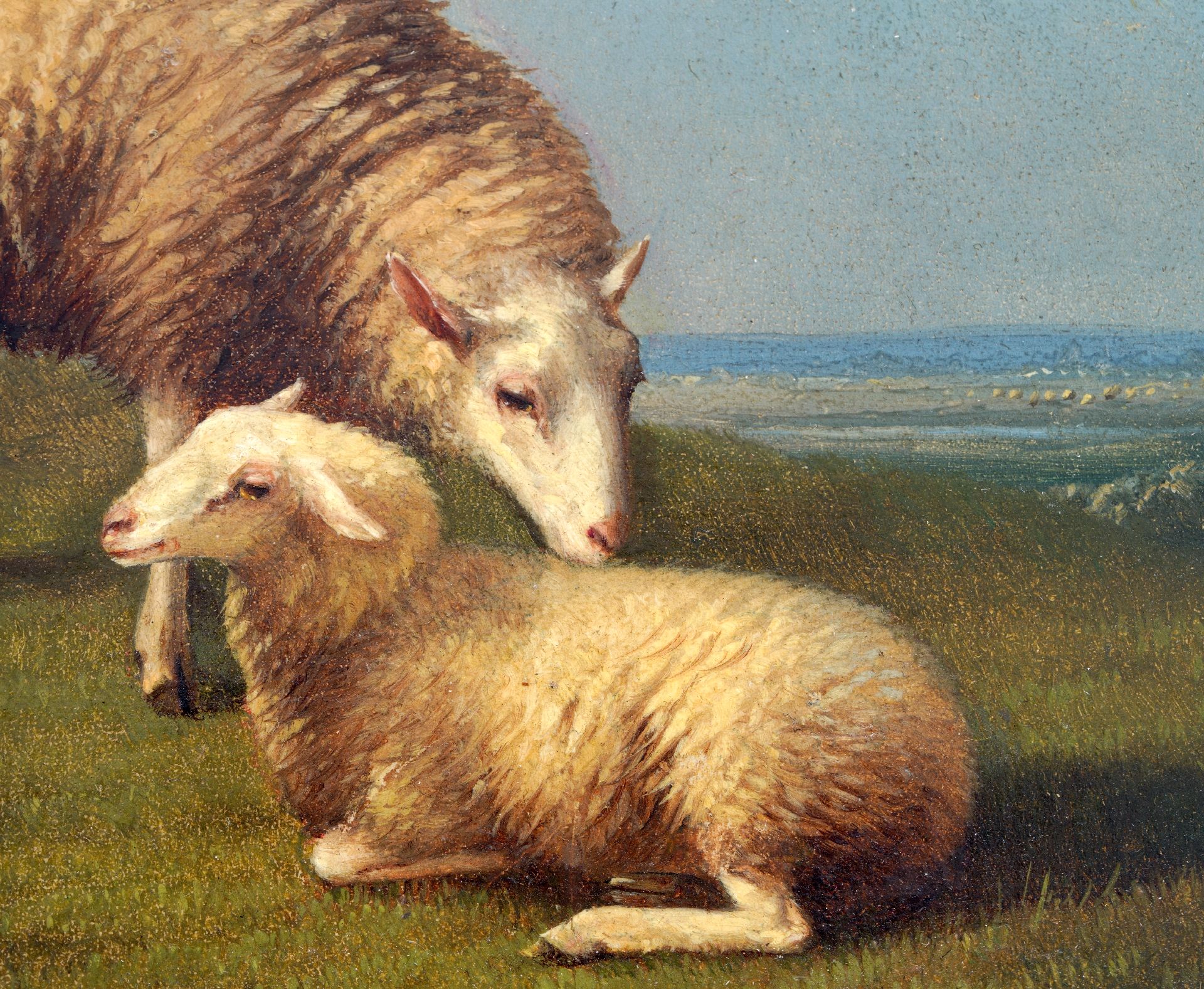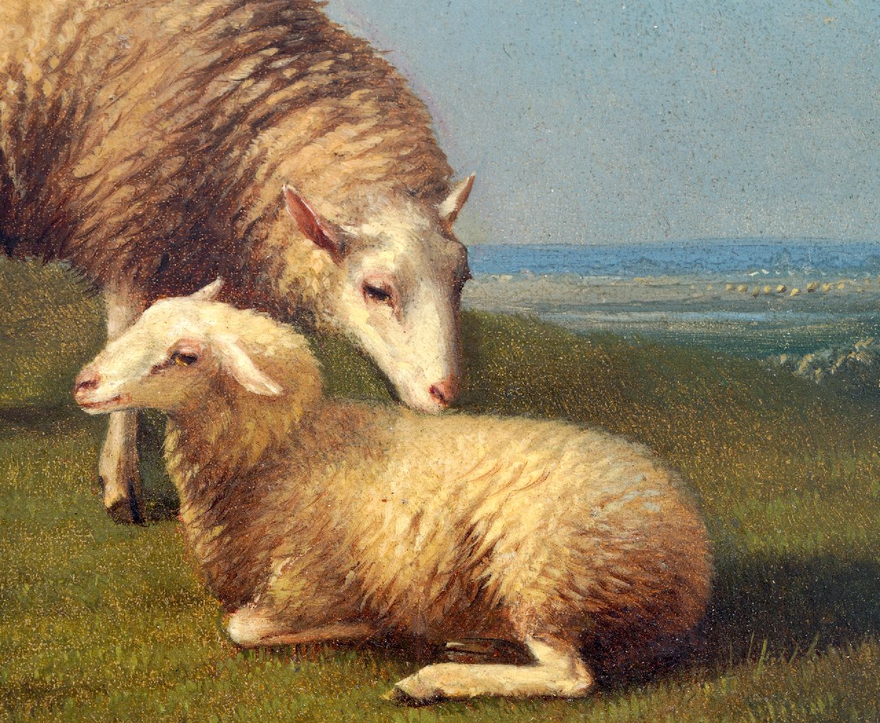 Frans van Severdonck kunstwerk • schilderij • te koop Ooi en lam in een landschap