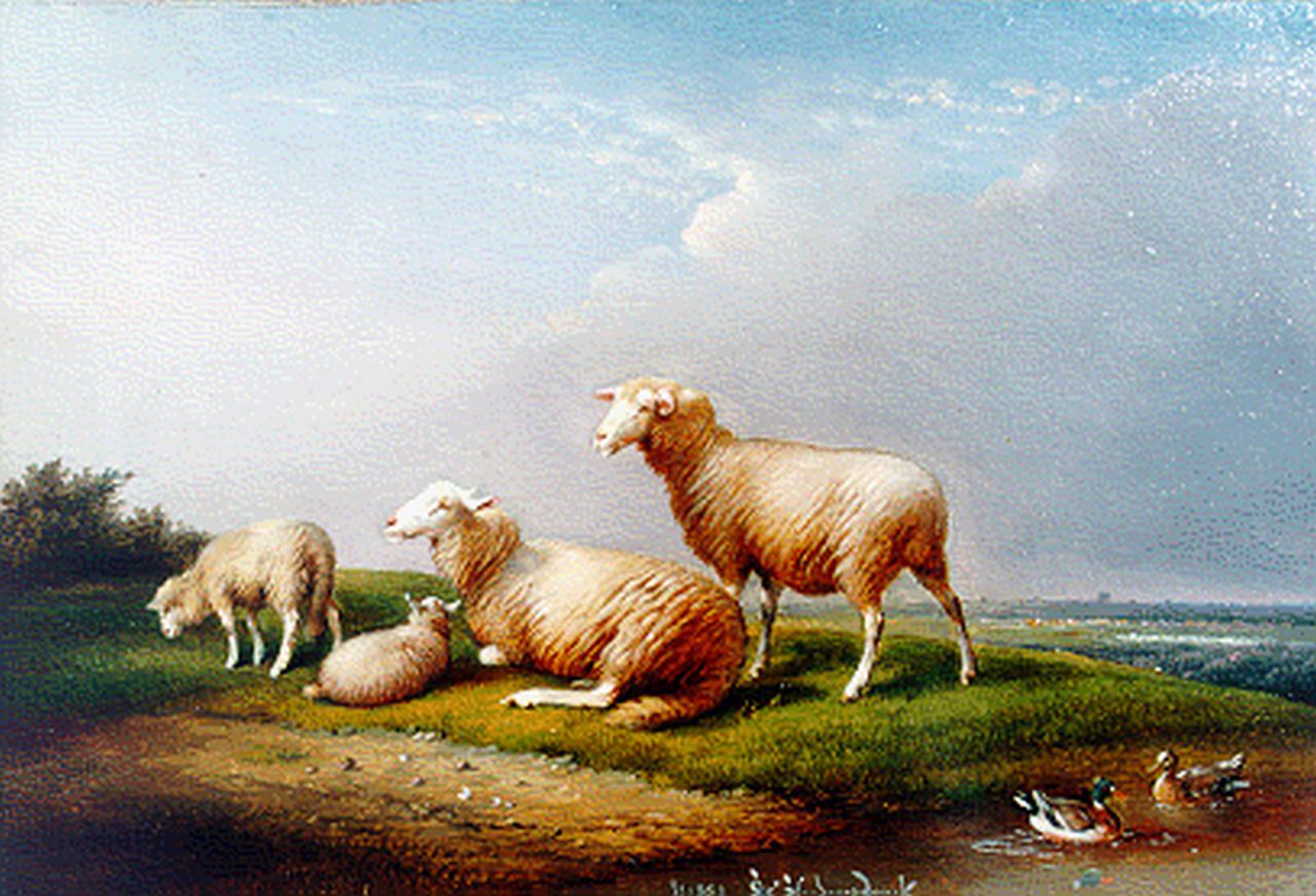 Frans van Severdonck kunstwerk • schilderij • voorheen te koop Schapen en lammetjes in weidelandschap
