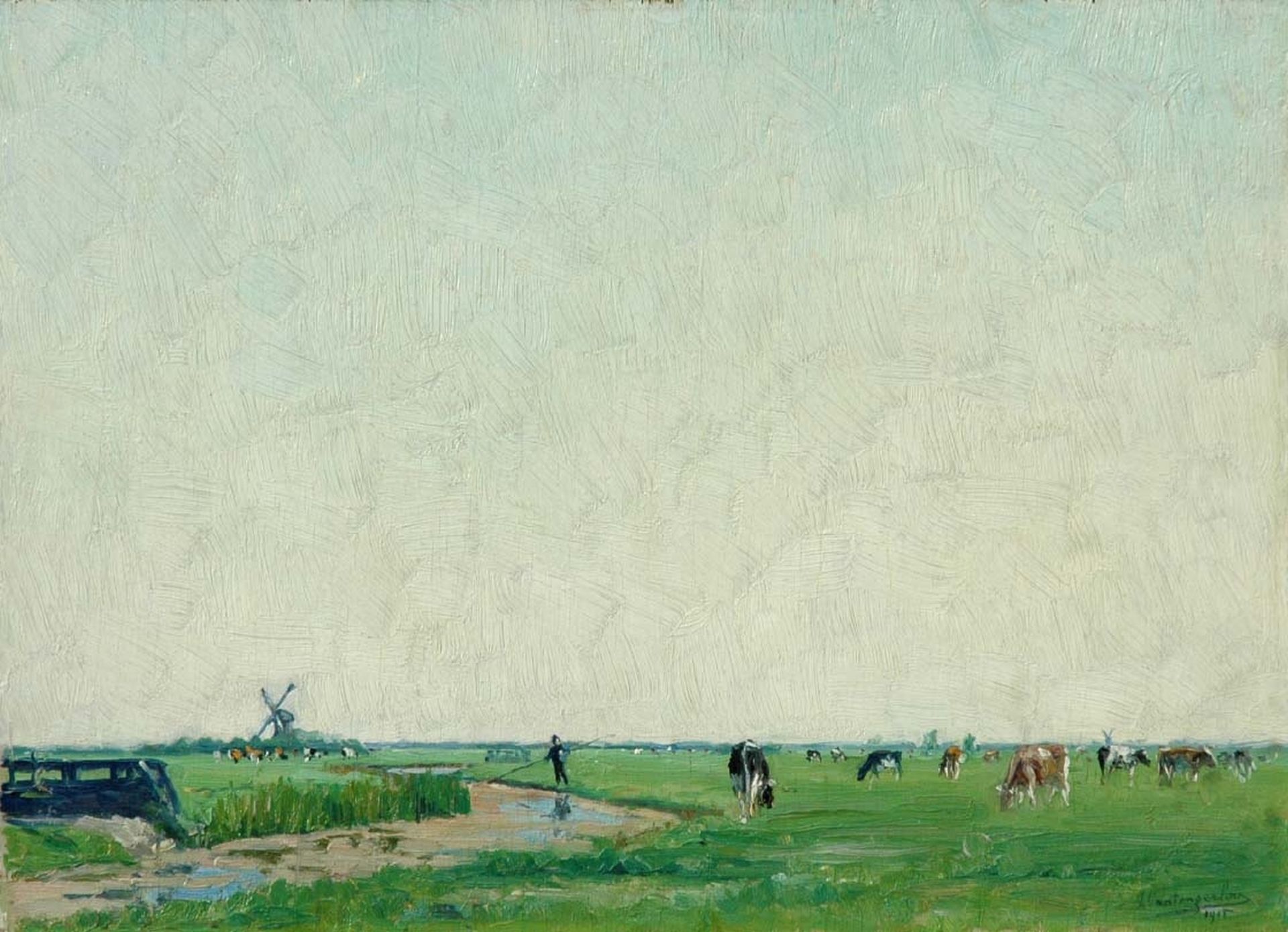 Frans van Tongerloo kunstwerk • schilderij • voorheen te koop Weids polderlandschap met vee