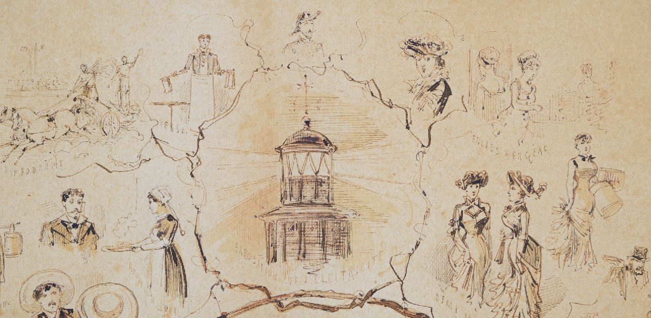 inkt, aquarel en gouache op papier 37,7 x 26,4 cm, gesigneerd linksonder met initialen 'C.R.s' en gedateerd 1881