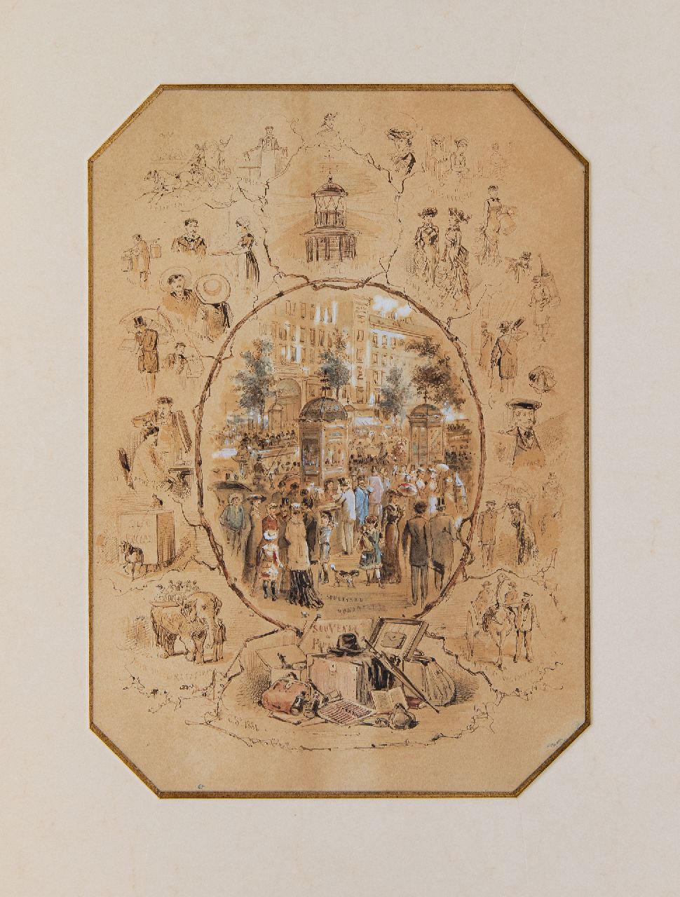 Franse School kunstwerk • aquarel • tekening • te koop Souvenirs de Paris