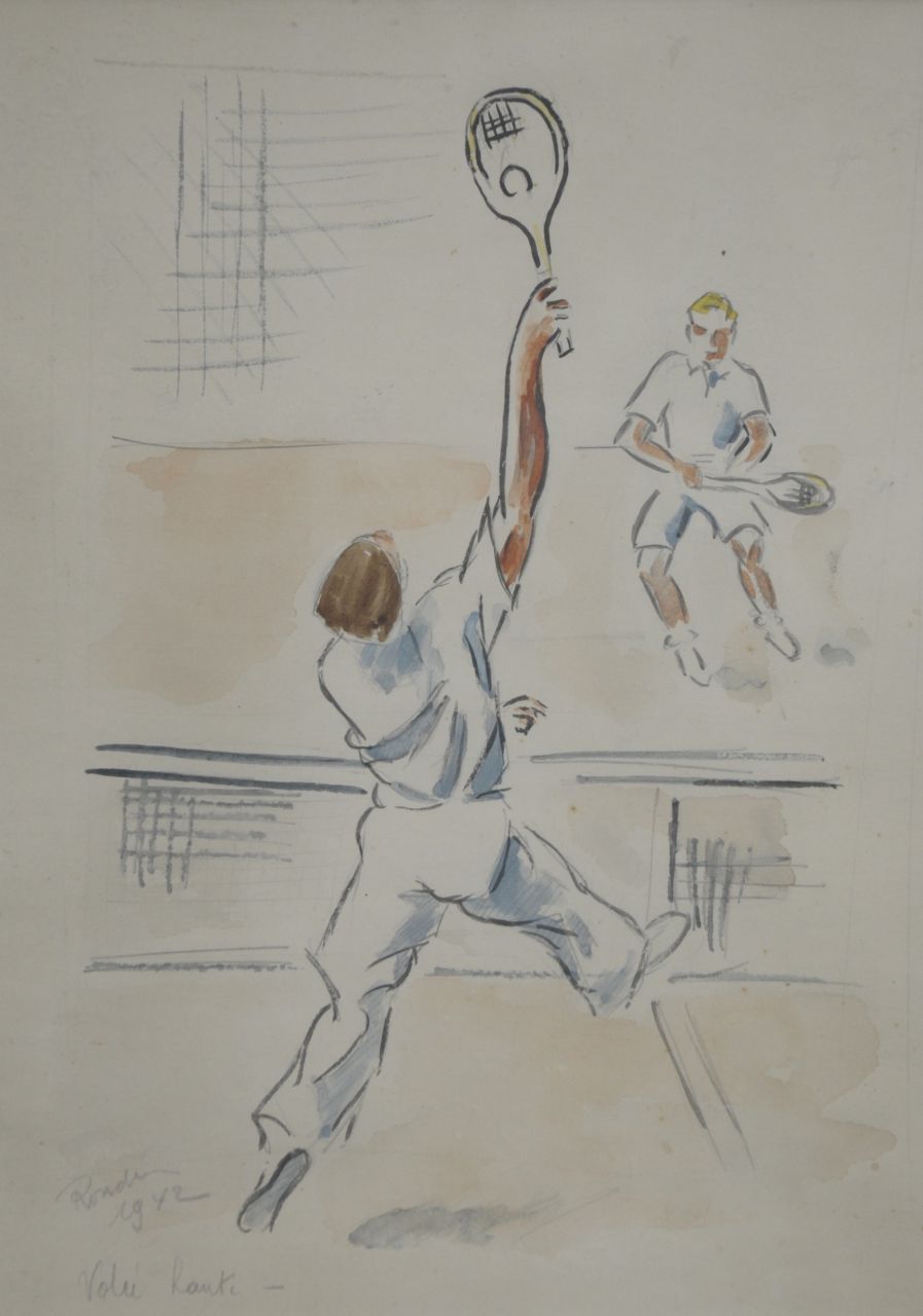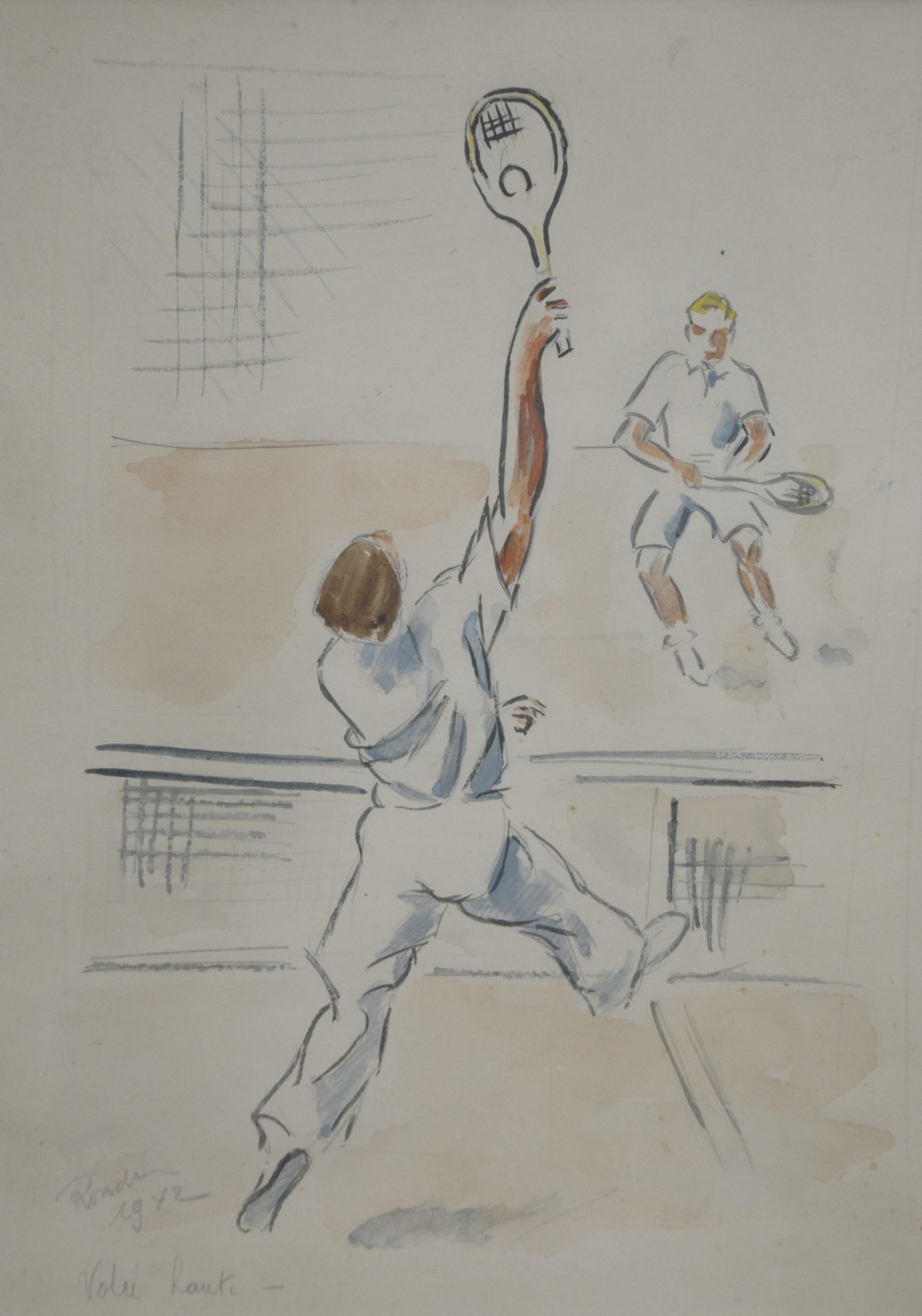Franse School kunstwerk • aquarel • tekening • te koop Tennisspelers
