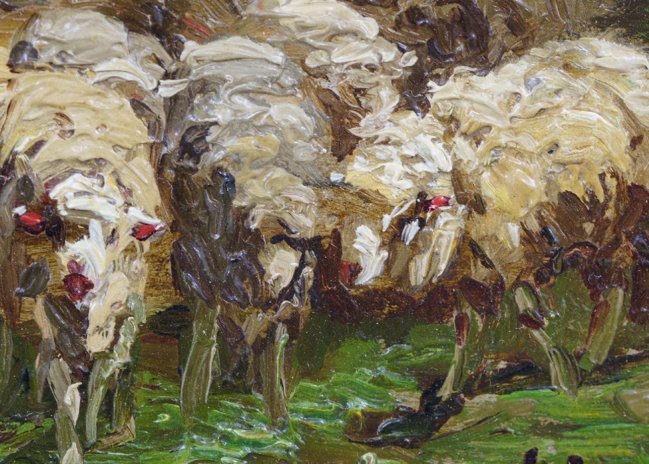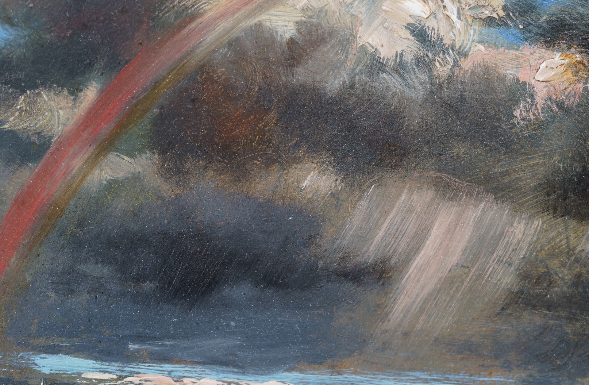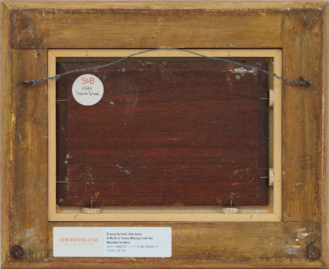 Franse School kunstwerk • schilderij • te koop Kudde schapen, vluchtend voor het onweer/regenboog