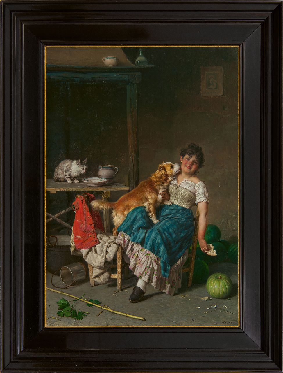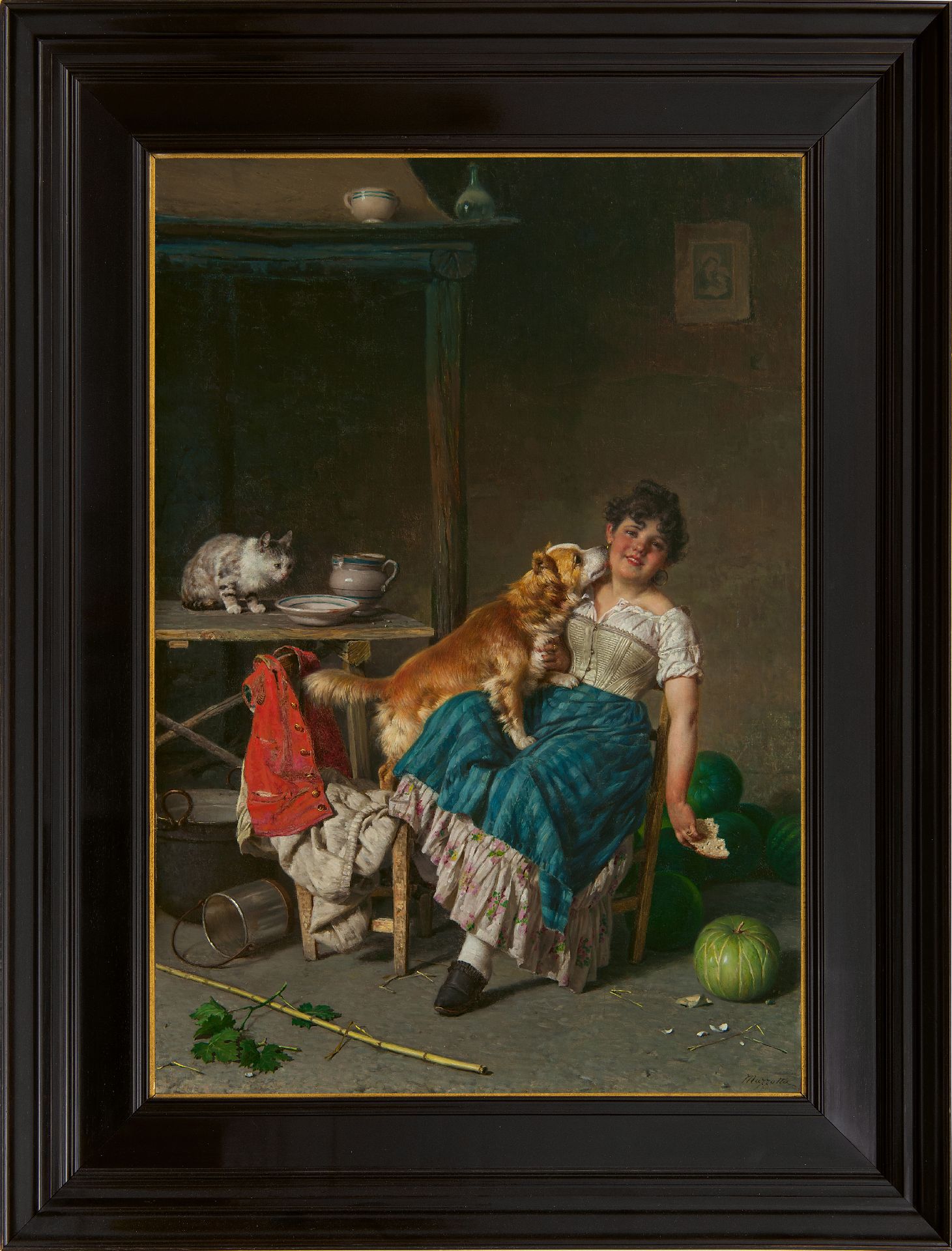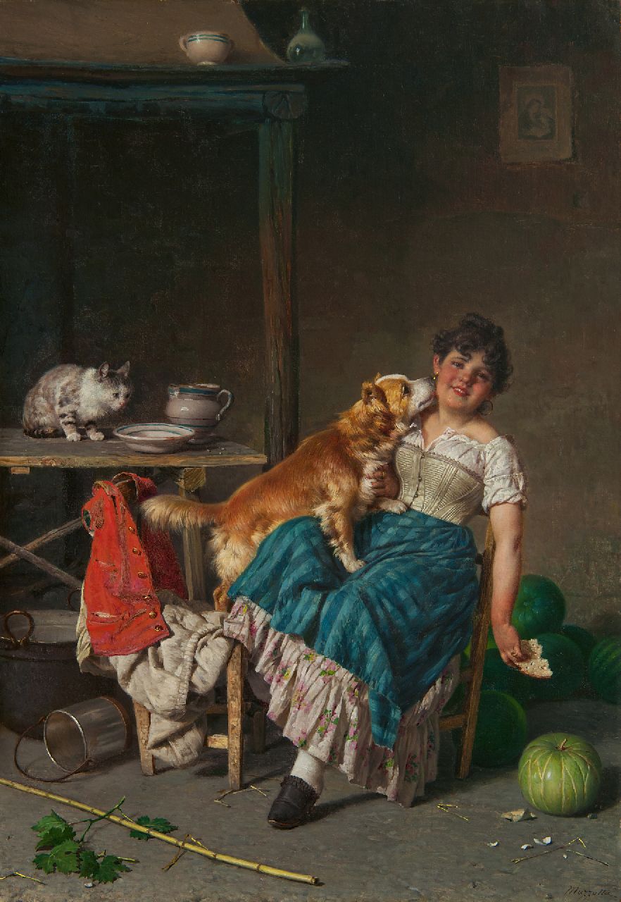 Voorstellingen met landvolk in de hoofdrol waren in de 19e eeuw in heel Europa geliefd bij de opkomende bourgeoisie. Het bestaan van de dichtbij de natuur levende vissers en boeren werd schilderachtig gevonden, hun gevoelens zag men als eerlijk en oprecht. De onderwerpen van dit genre varieerden van oogstende boeren en ‘belles’ tot familiegeluk en blozende kinderen spelend met hun geitje, hond of poes. Elk land had zijn voorkeuren. Zo was in Nederland het vissersgenre populair, in Frankrijk de gezamenlijke oogst en het marktleven en stonden in Italië, het land waar Federico Mazzotta woonde en werkte, de plattelandsvrijage en het knappe marktmeisje en keukenhulpje centraal.
