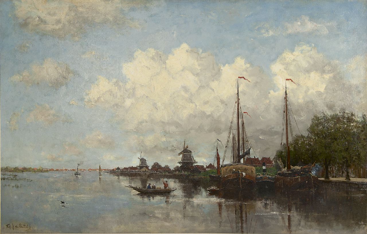 Rond de Middeleeuwen ontstaan in Europa tal van steden aan rivieren. Pas aan het einde van de 19e eeuw wordt de trein een populair transportmiddel, maar tot dan toe zijn rivieren de belangrijkste vervoersaders voor de steden. Welke belangrijke plek voor transport ze ook innemen, rivieren waren en zijn prachtige ‘wegen’ door het landschap. De vochtige Hollandse wolkenlucht bereikt een maximaal effect bij het rivierenlandschap. Lichteffecten spiegelen zich prachtig in het water. Fredericus Jacobus van Rossum du Chattel wordt gerekend tot de tweede generatie van de Haagse School, maar ontwikkelde een geheel eigen stijl. Hij kreeg de bijnaam ‘schilder van de Vecht’ omdat deze rivier hem inspireerde tot het maken van talloze watergezichten. Hij verkocht veel werken in het buitenland, met name in de Verenigde Staten.