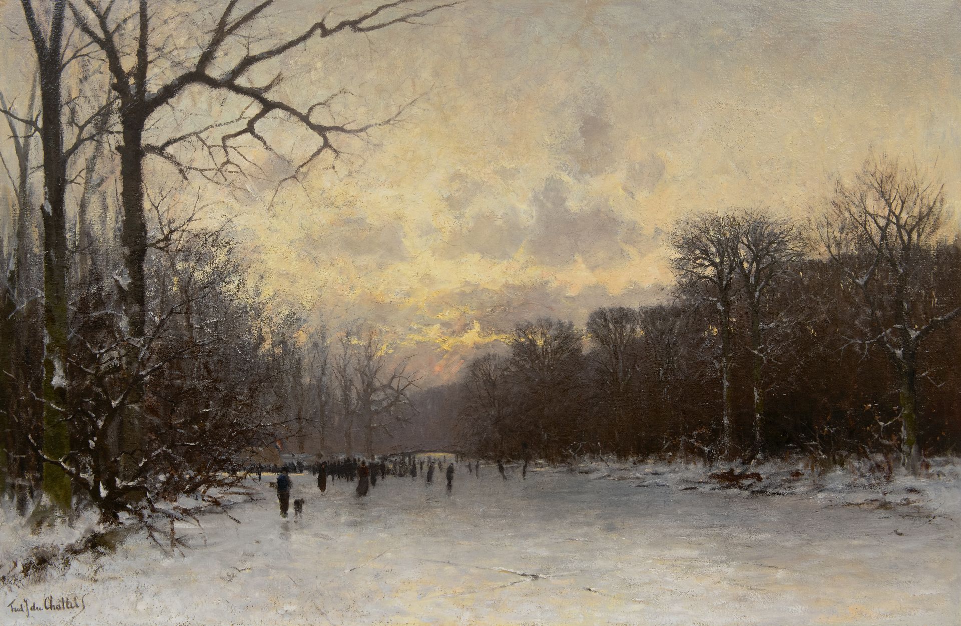 Fredericus Jacobus van Rossum du Chattel kunstwerk • schilderij • te koop Schaatsen op de Haagse Bosvijver