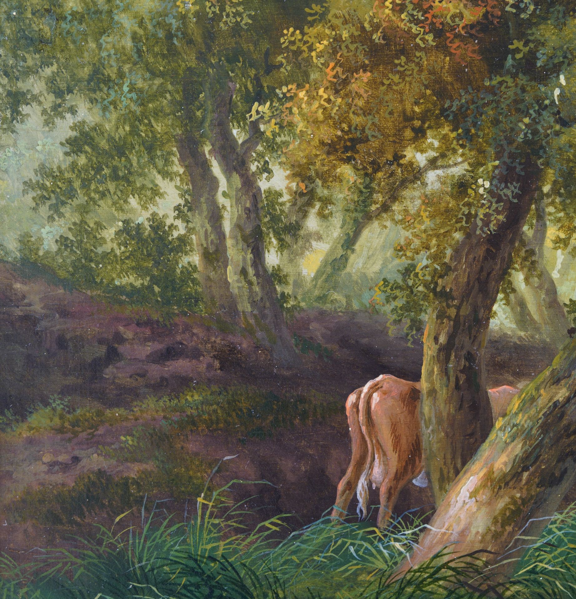olieverf op paneel 26,5 x 34,3 cm, gesigneerd (onduidelijk) verso op etiket en te dateren ca. 1815, zonder lijst