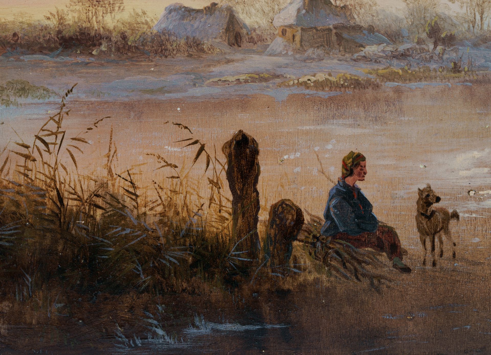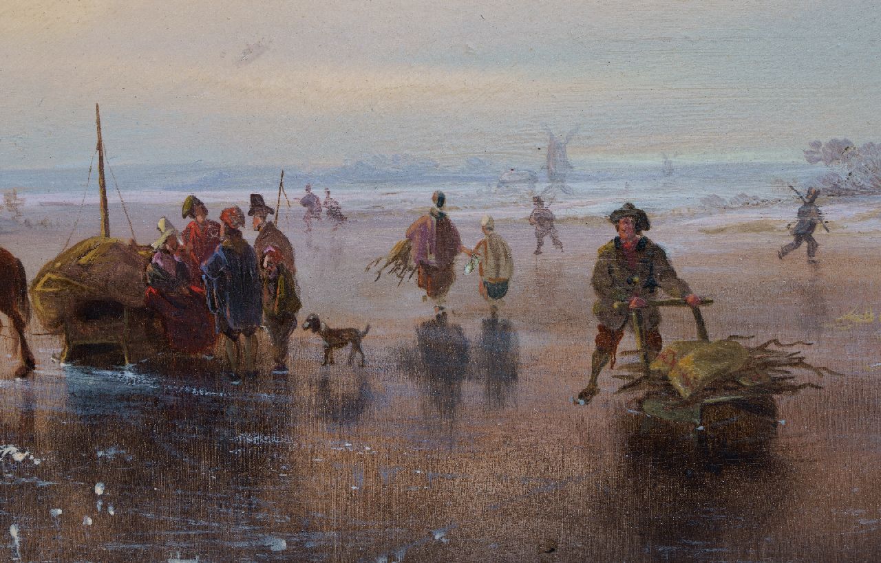 Frederik Marinus Kruseman kunstwerk • schilderij • voorheen te koop IJsgezicht met figuren en werksleden