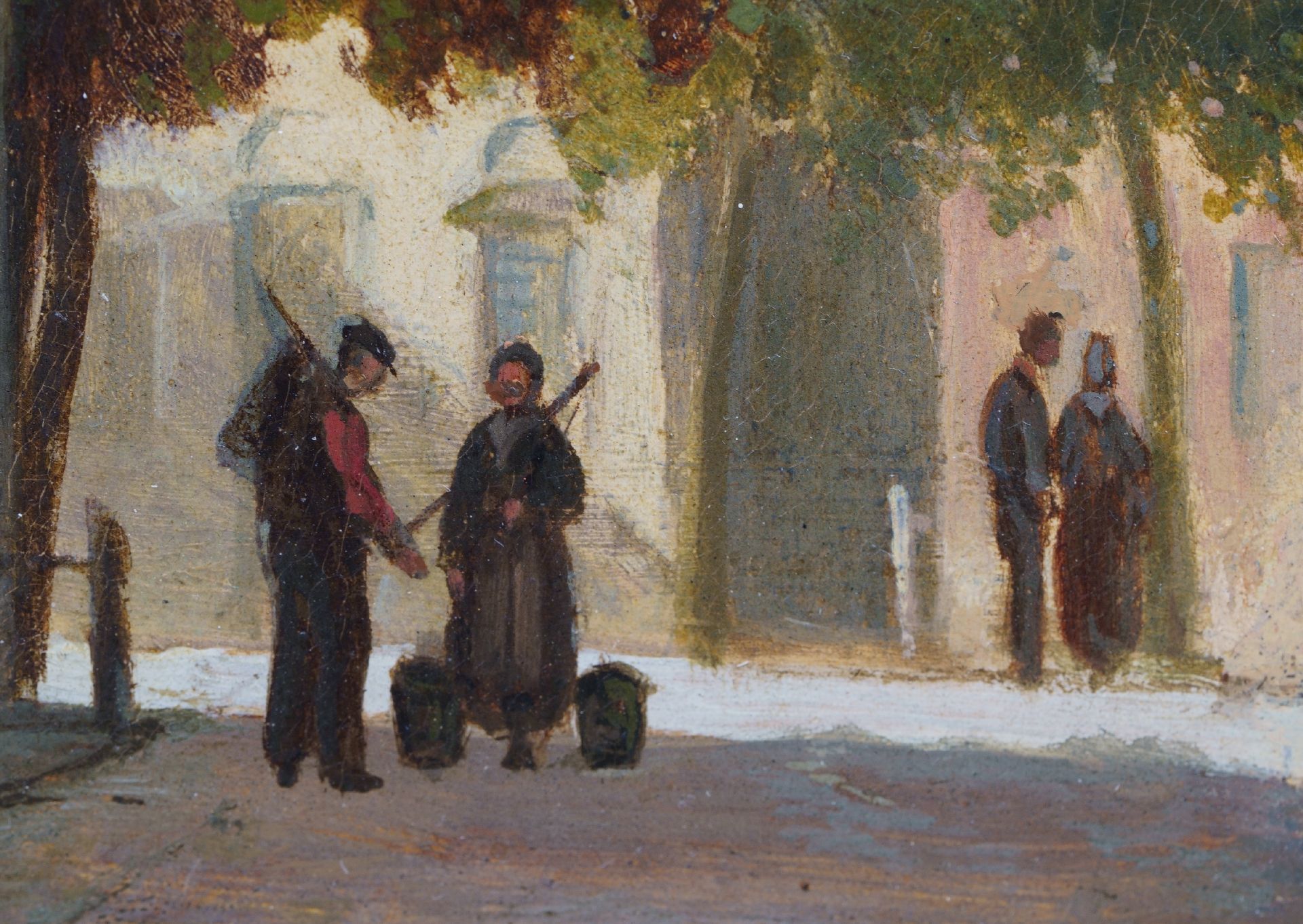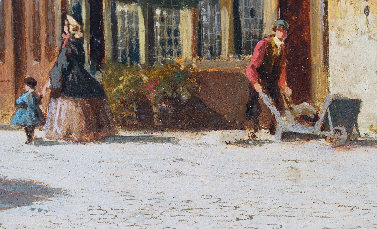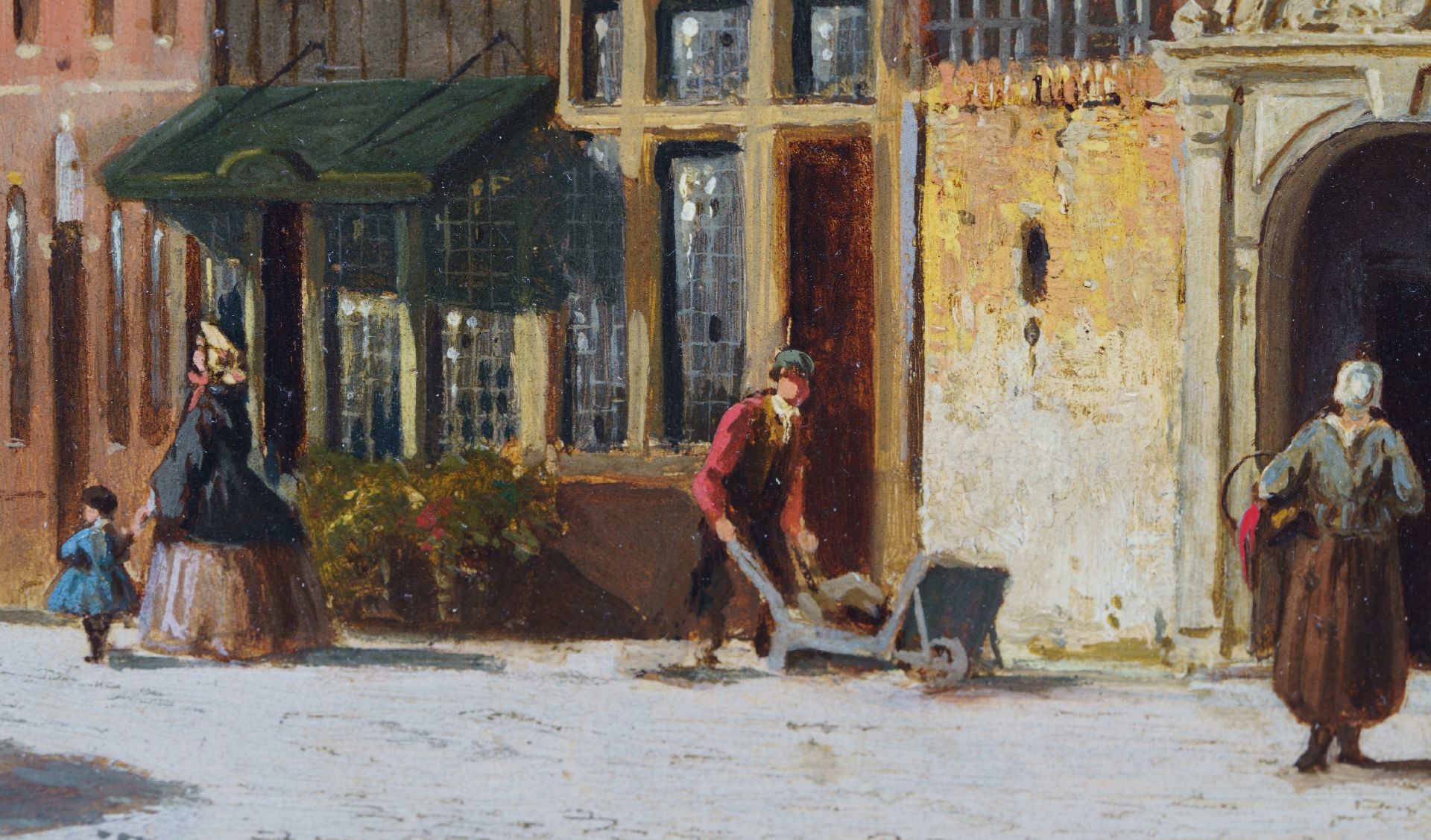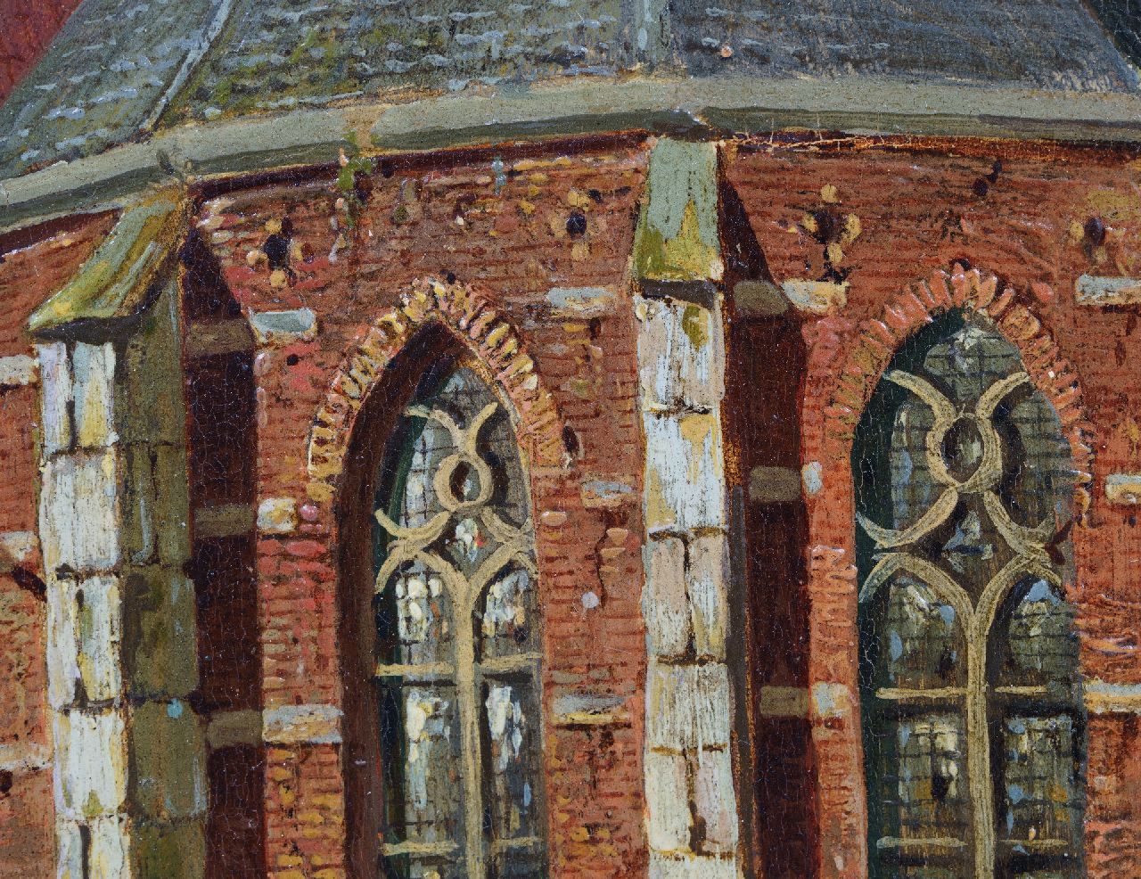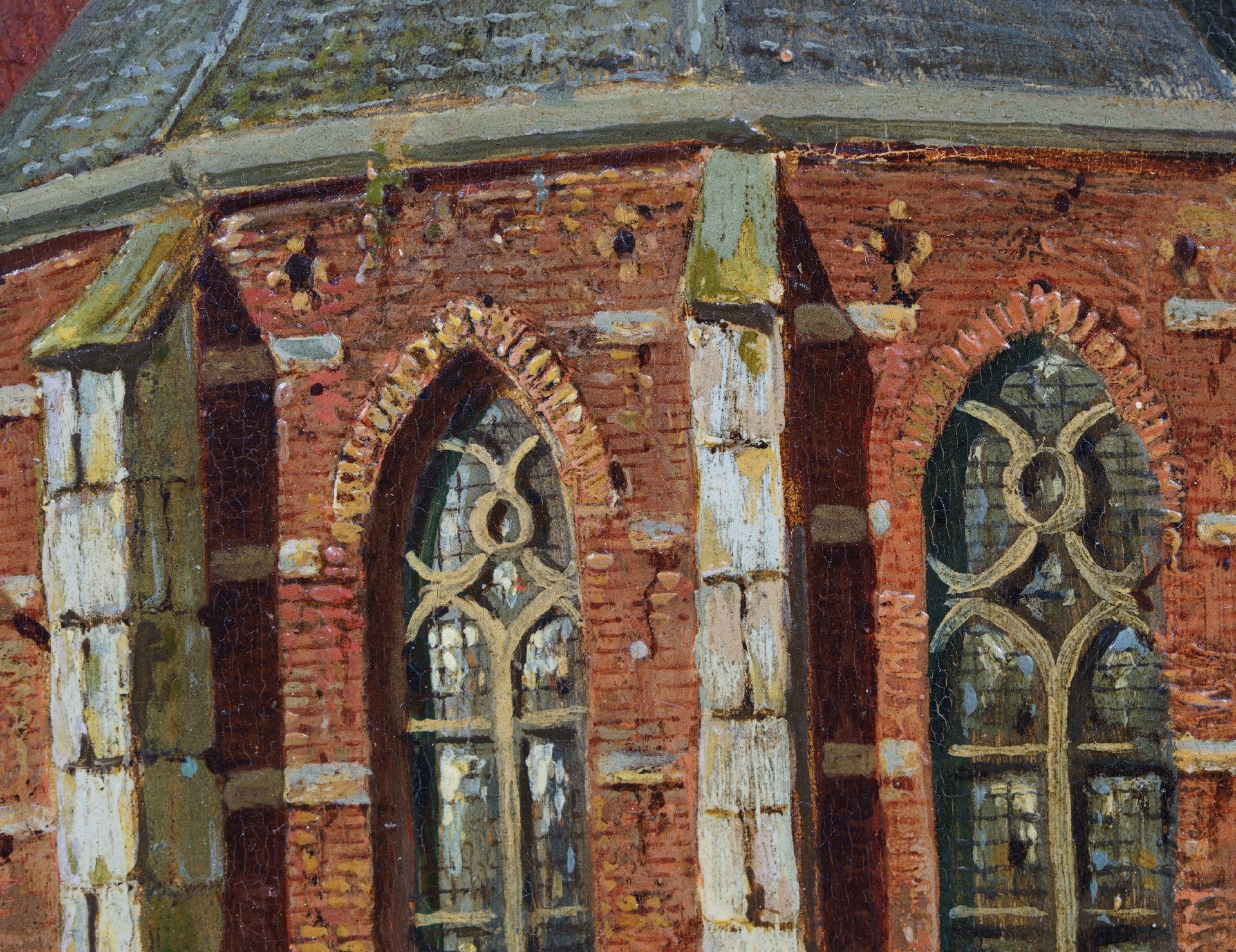 Frederik Roosdorp kunstwerk • schilderij • voorheen te koop De Groenmarkt te Den Haag met op de achtergrond de toren van de Grote Kerk