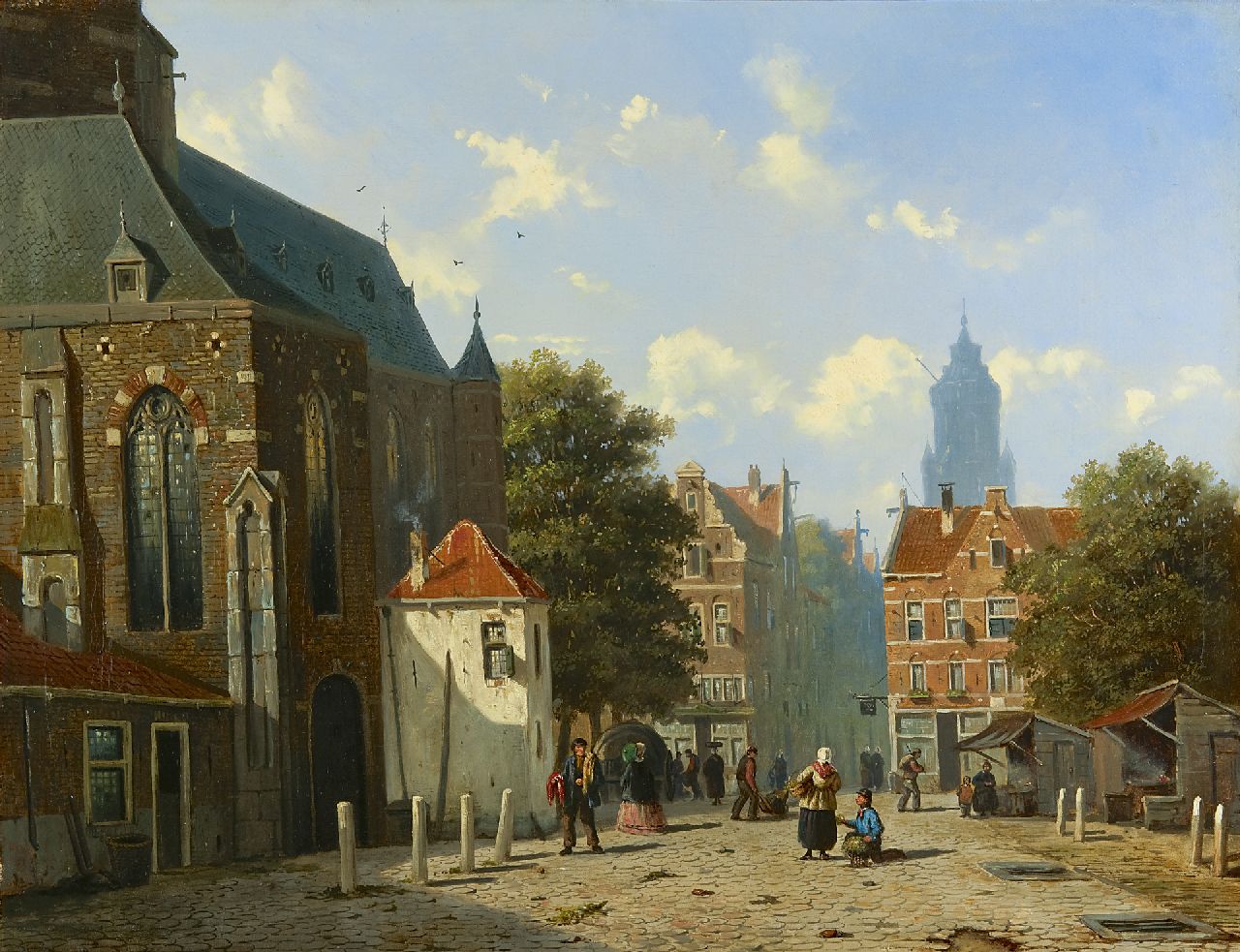 Frederik Roosdorp kunstwerk • schilderij • voorheen te koop Gezicht op een Hollands kerkplein