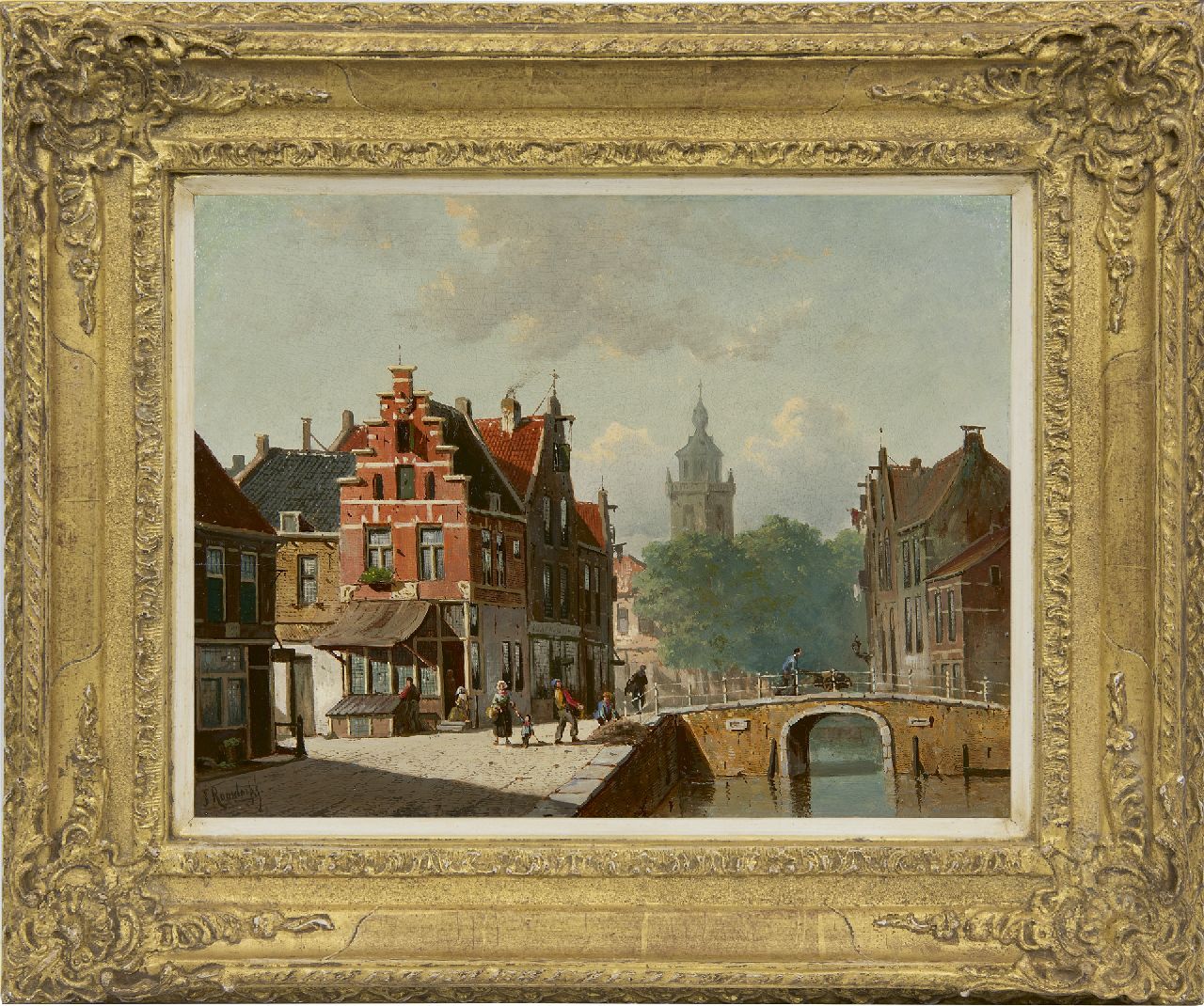 Frederik Roosdorp kunstwerk • schilderij • voorheen te koop Hollandse stadsgracht in de zomer