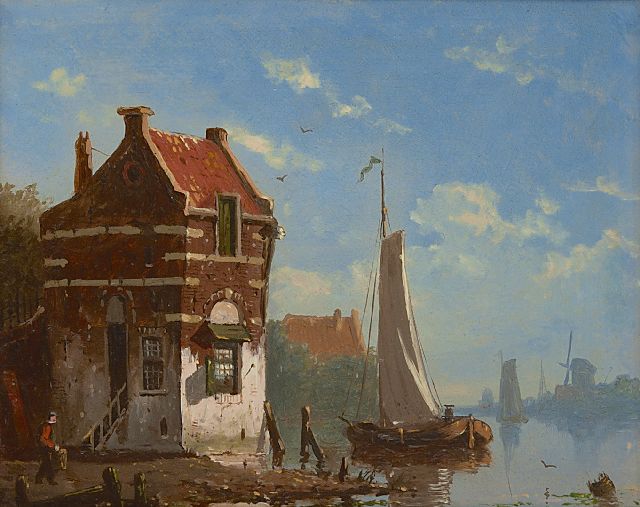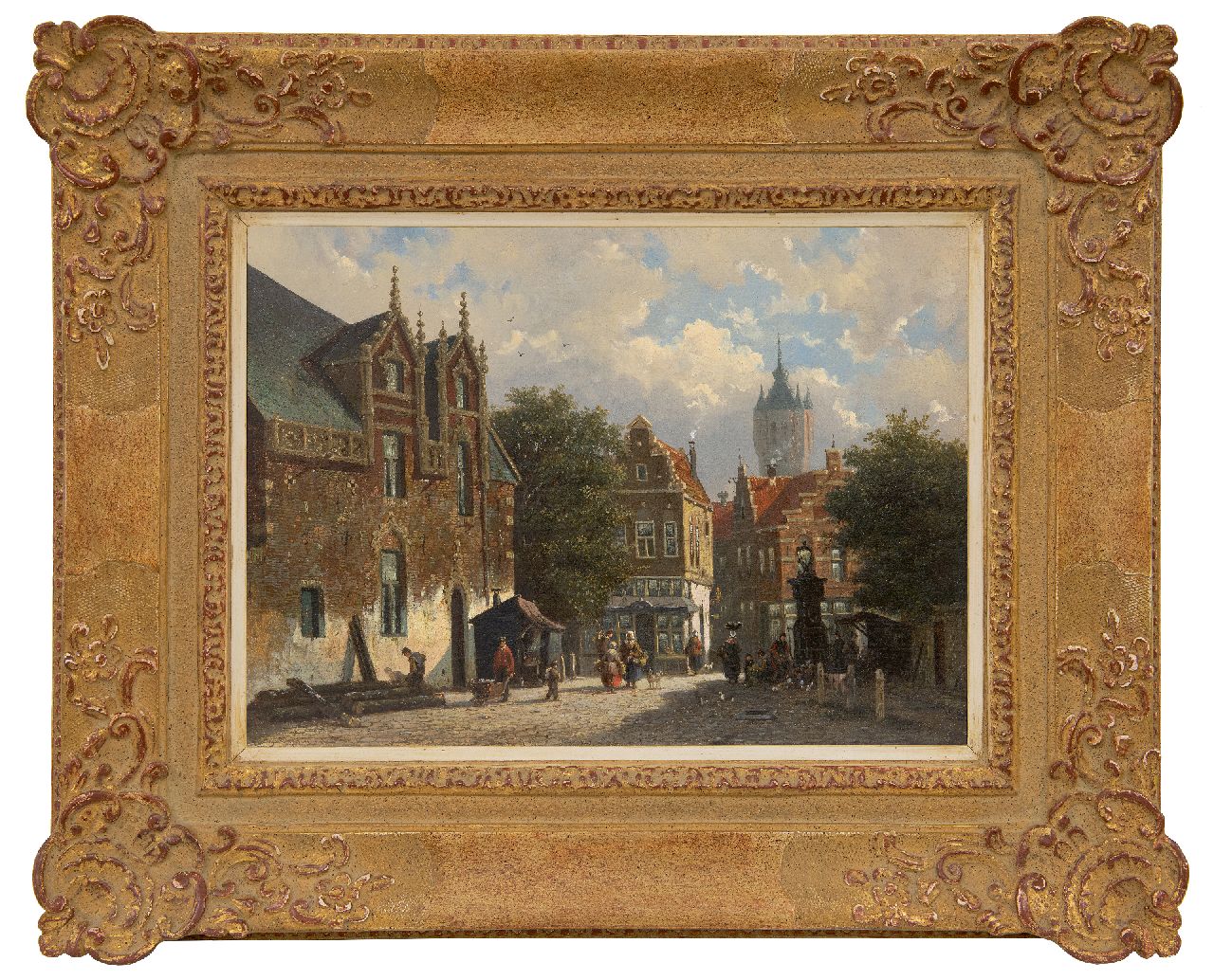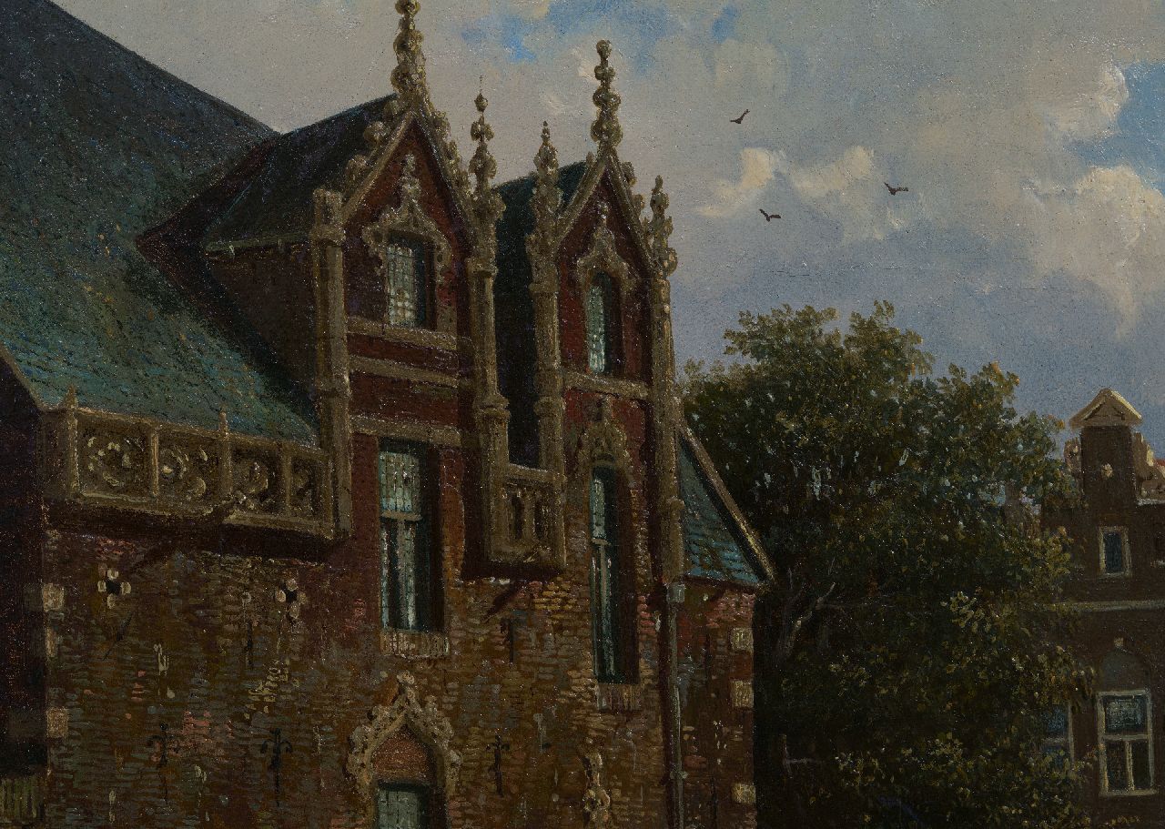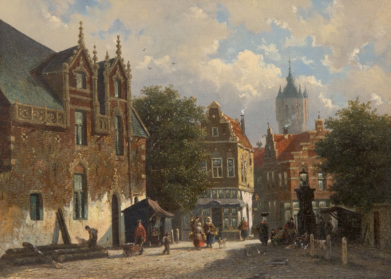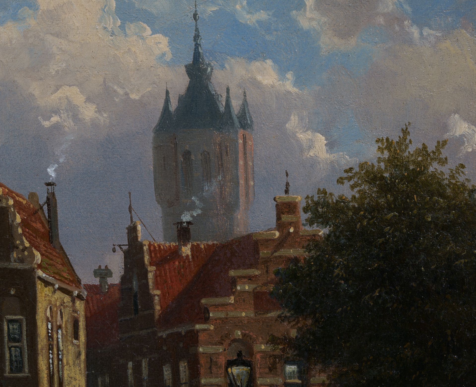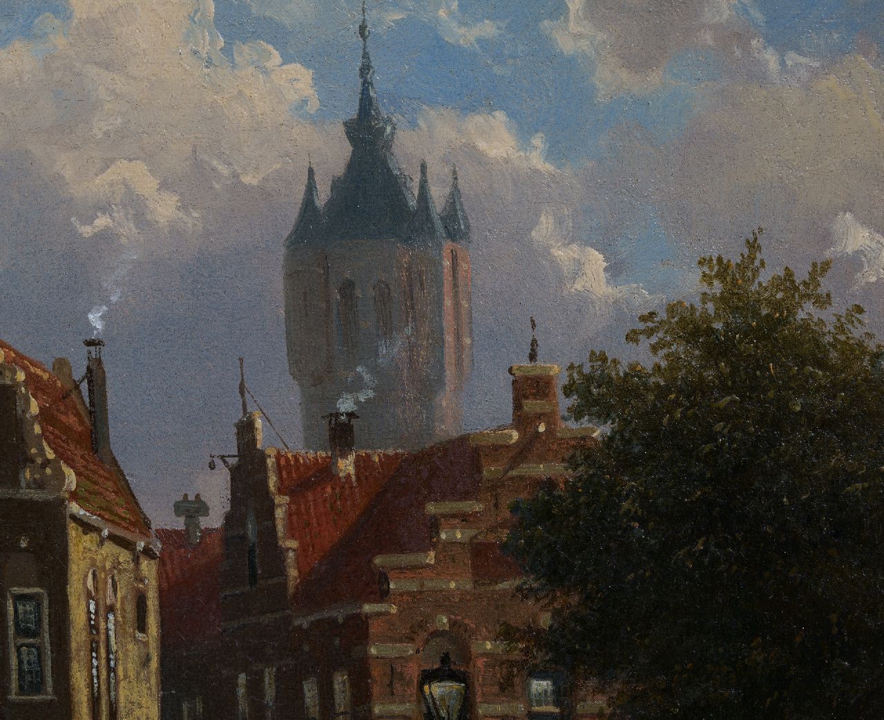 Frederik Roosdorp kunstwerk • schilderij • te koop Zonnig stadsgezicht met de Oude Kerk van Delft