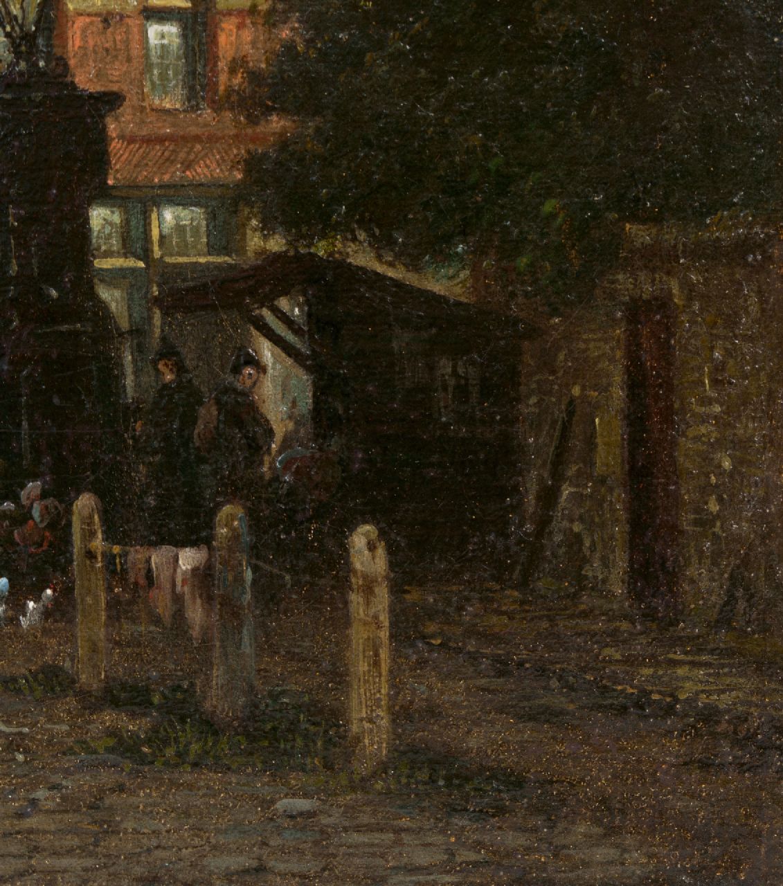 Van Frederik Roosdorp weten wij niet veel meer dan dat hij in 1839 in Amsterdam werd geboren en zich specialiseerde in het schilderen van zonnige, levendig gestoffeerde stadsgezichten. Het is niet bekend wie zijn leermeester was, maar zijn werk vertoont alle specifieke kenmerken van het romantische Hollandse stadsgezicht zoals dat tussen 1830 en 1850 vooral in Amsterdam vorm kreeg: een nauwkeurige uitwerking, contrast tussen licht en schaduw en een voorliefde voor oude, Hollandse architectuur. Een van de grote meesters van dit genre was Cornelis Springer. Net als Springer schilderde Roosdorp zowel stadsfantasieën als topografisch juiste stadsportretten. De schilder Roosdorp stierf op jonge leeftijd en liet een klein oeuvre na.