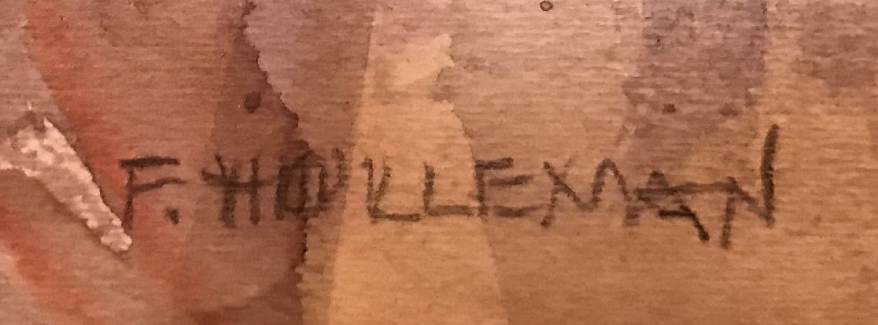 Frida Holleman schildert landschappen, interieurs en portretten in een vlotte impressionistische stijl. Haar opleiding kreeg ze aan de Haagse Academie, daarna studeerde ze bij Stanhope Forbes in Engeland en bij de genreschilder Adrien Holy in Parijs. Terug in Nederland werkte ze in Den Haag enige tijd samen met Toon Kelder, die grote invloed had op haar artistieke ontwikkeling. In 1936 vertrok Frida Holleman naar Nederlands-Indië.