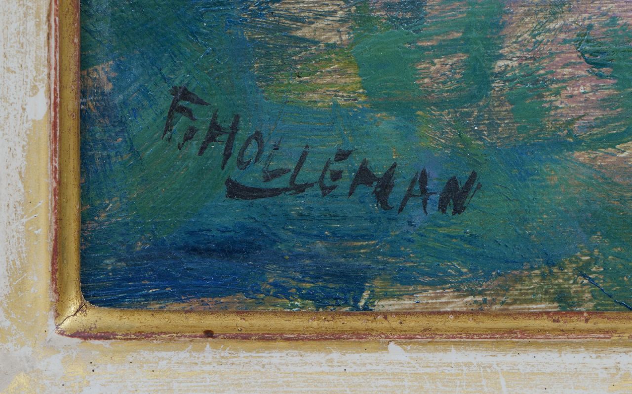 Frida Holleman schildert landschappen, interieurs en portretten in een vlotte impressionistische stijl. Haar opleiding kreeg ze aan de Haagse Academie, daarna studeerde ze bij Stanhope Forbes in Engeland en bij de genreschilder Adrien Holy in Parijs. Terug in Nederland werkte ze in Den Haag enige tijd samen met Toon Kelder, die grote invloed had op haar artistieke ontwikkeling. In 1936 vertrok Frida Holleman naar Nederlands-Indië.