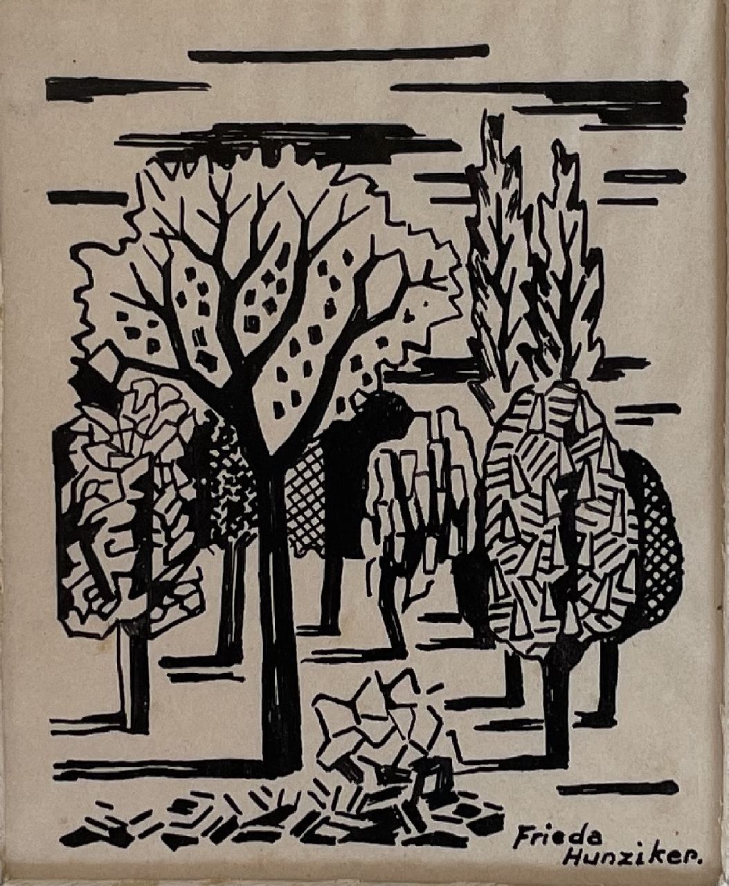 Frieda Hunziker kunstwerk • aquarel • tekening • voorheen te koop Bomen