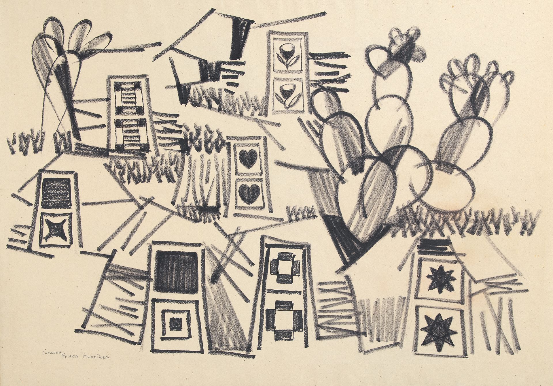 Frieda Hunziker kunstwerk • aquarel • tekening • voorheen te koop Compositie