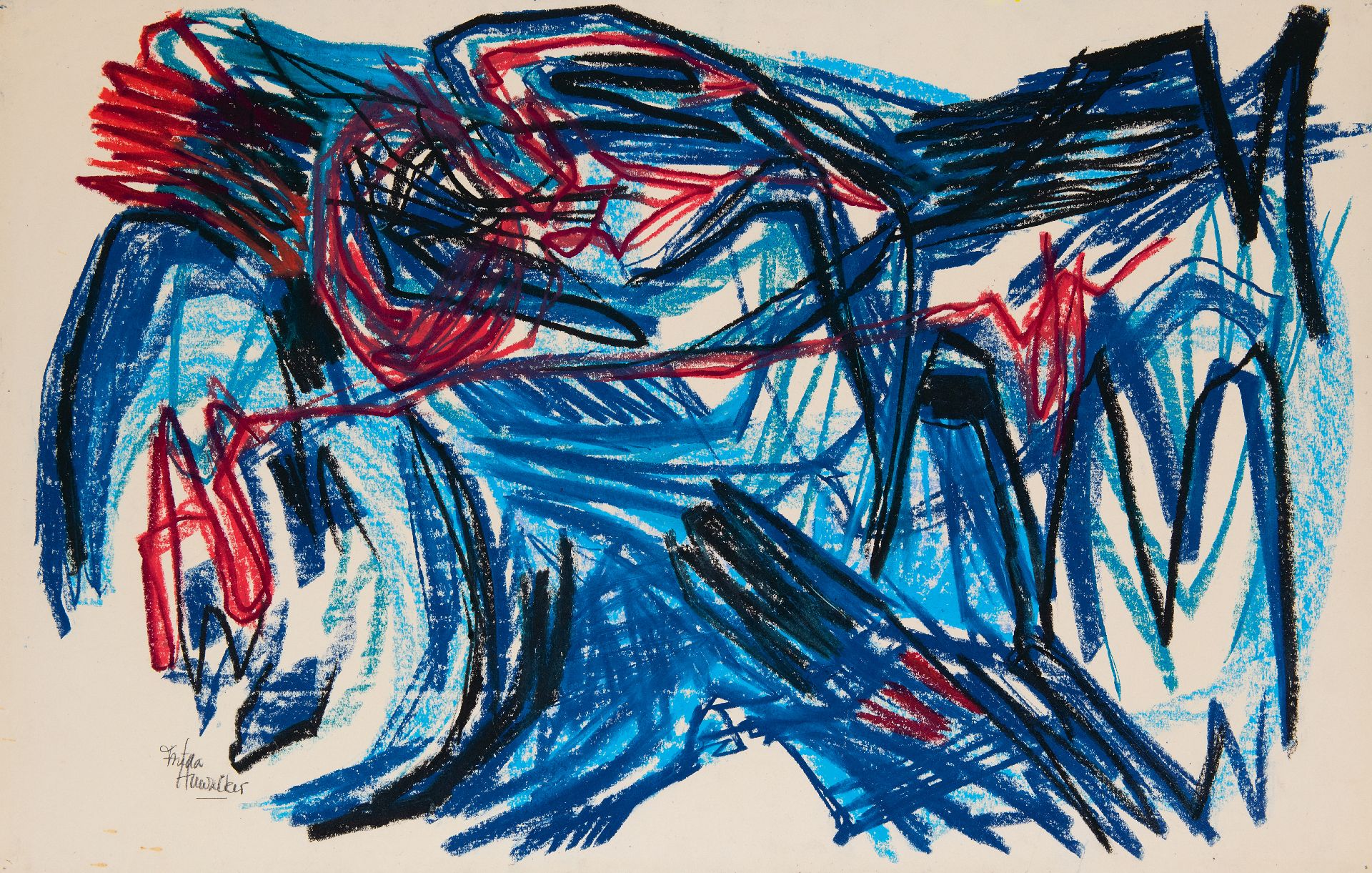 waskrijt op papier 50,2 x 78,3 cm, gesigneerd linksonder en te dateren 1961