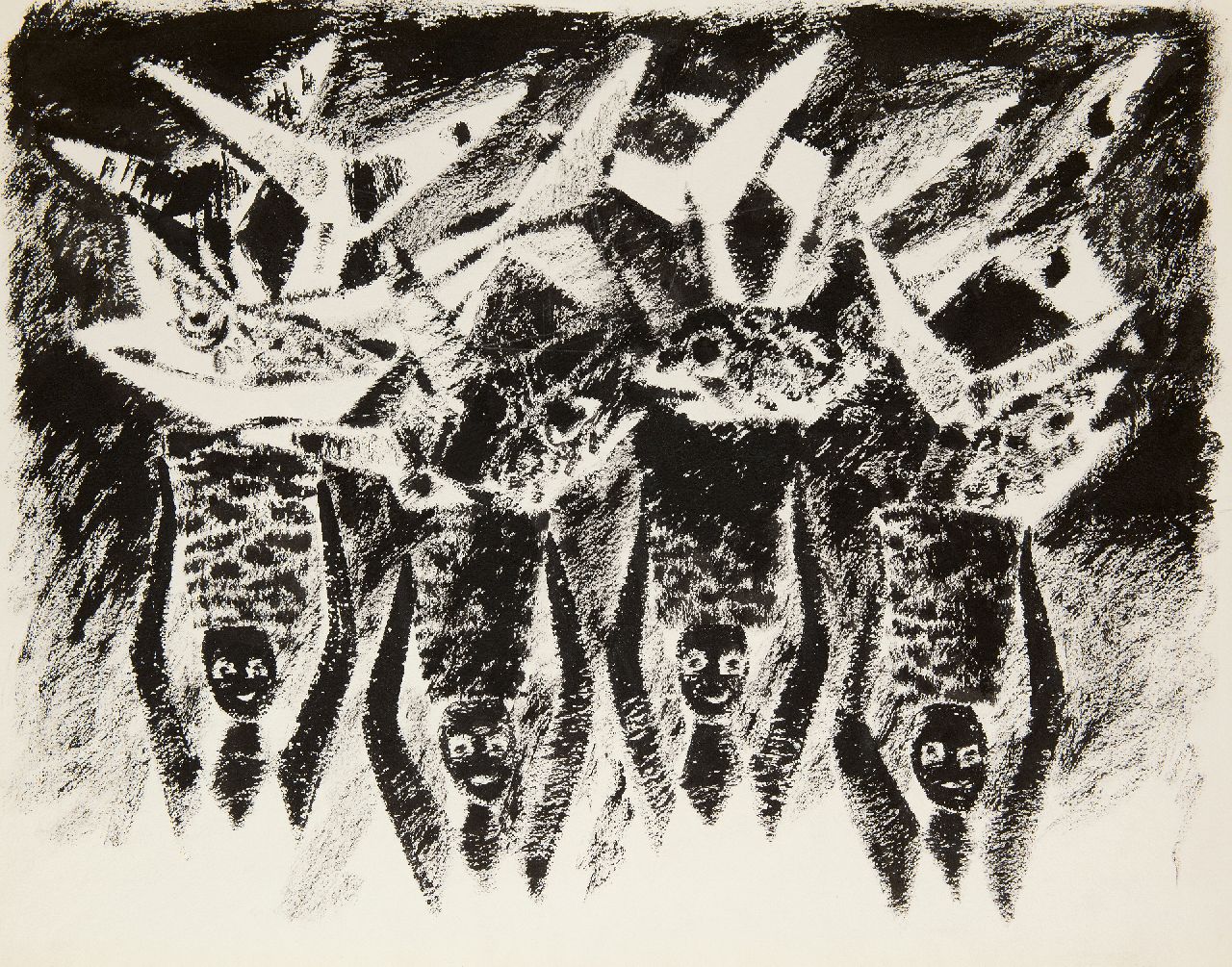 Frieda Hunziker kunstwerk • aquarel • tekening • voorheen te koop Hoofden, manden, vissen