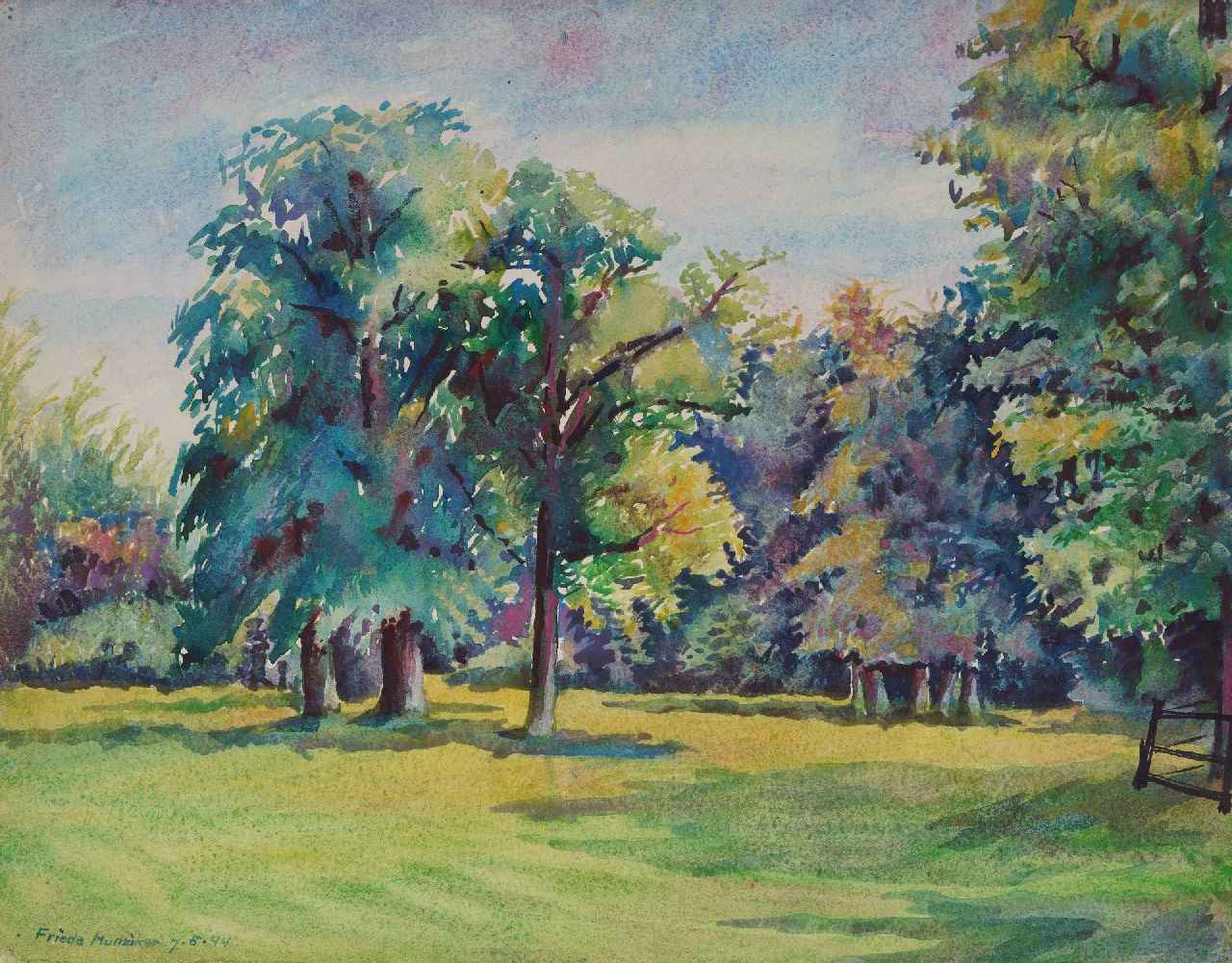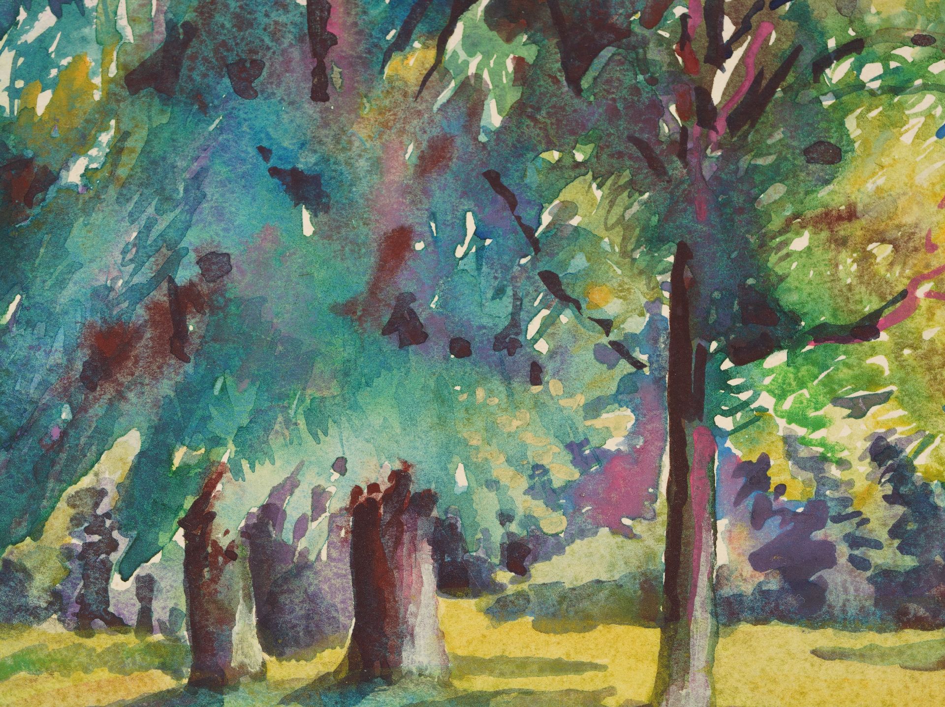Frieda Hunziker kunstwerk • aquarel • tekening • voorheen te koop Landschapspark van kasteel Twickel, Delden