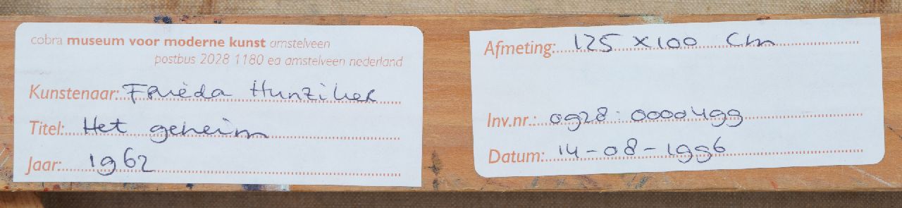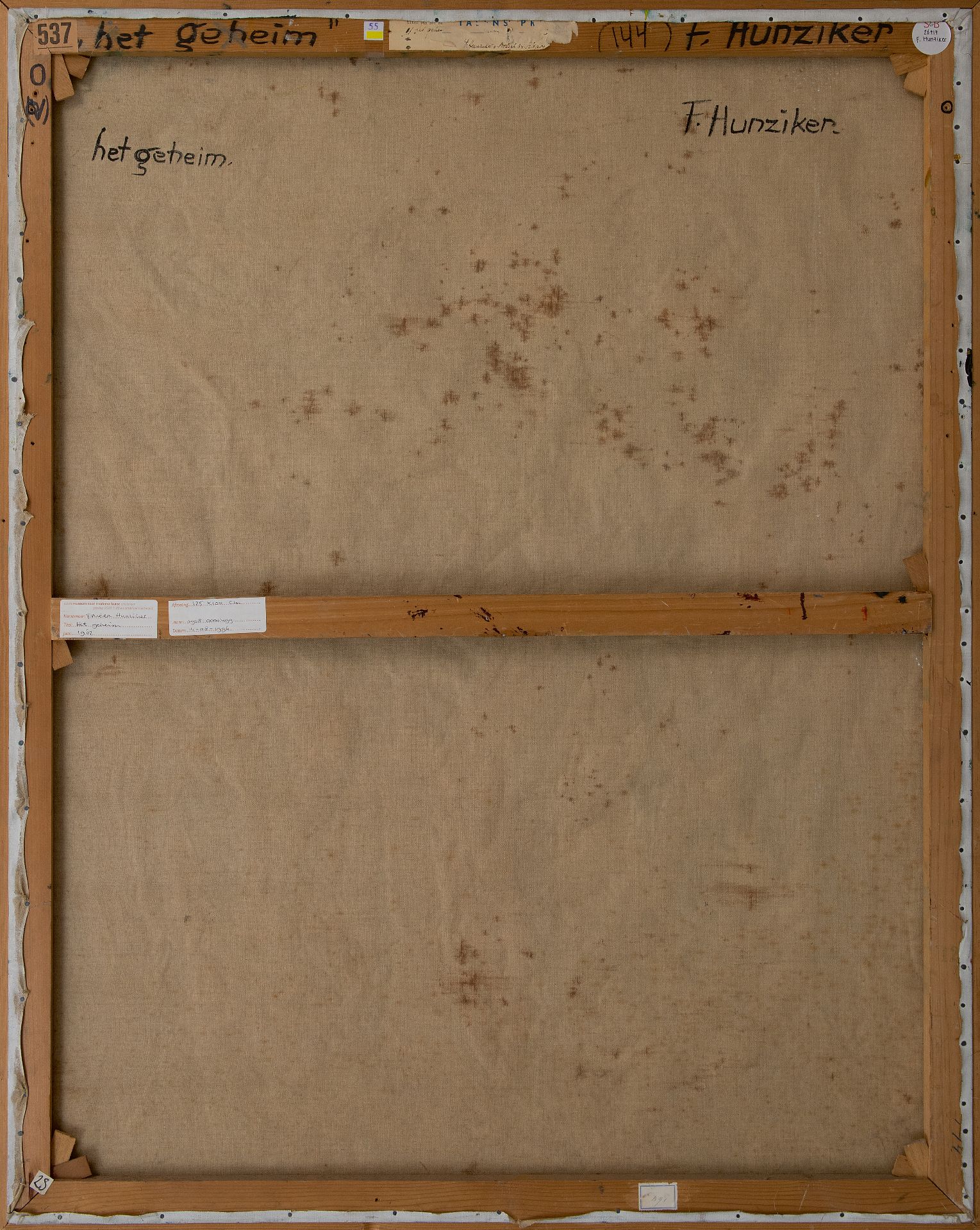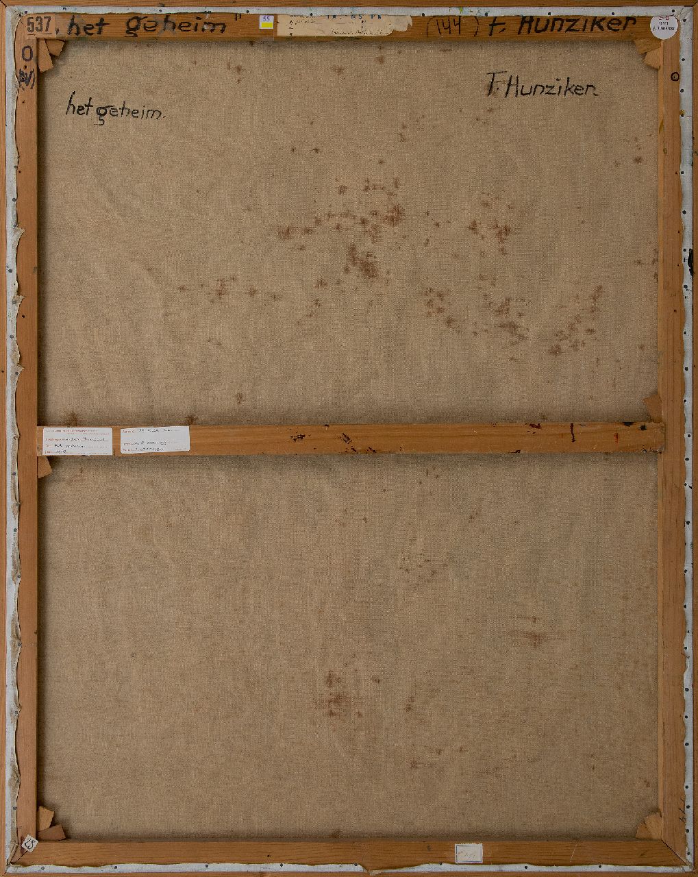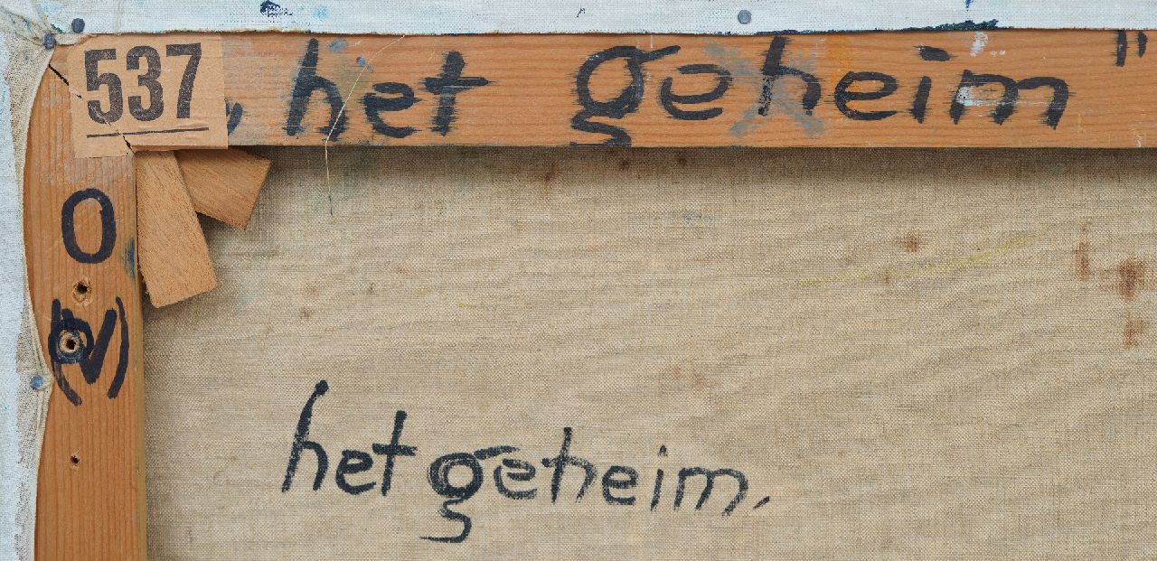 annotatie annotatie verso: 'het geheim' en op spieraam 'het geheim F. Hunziker'