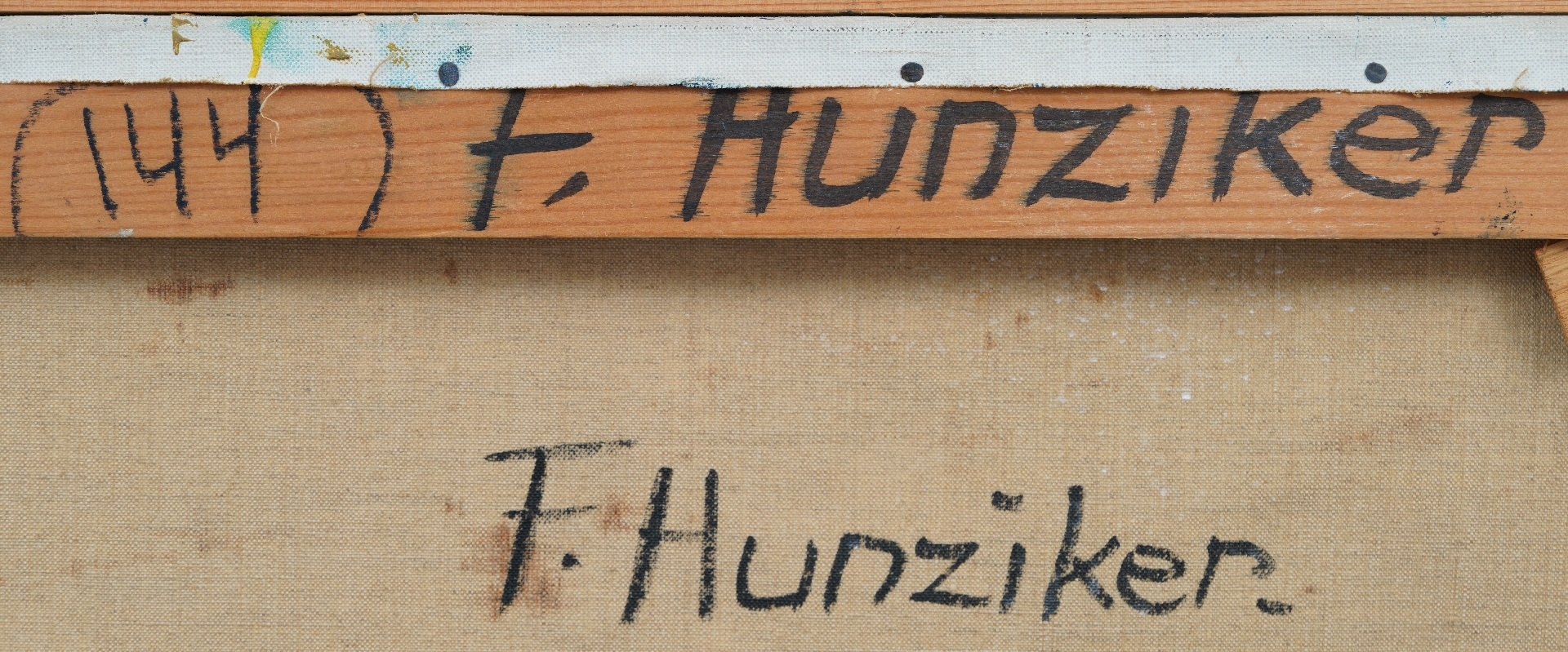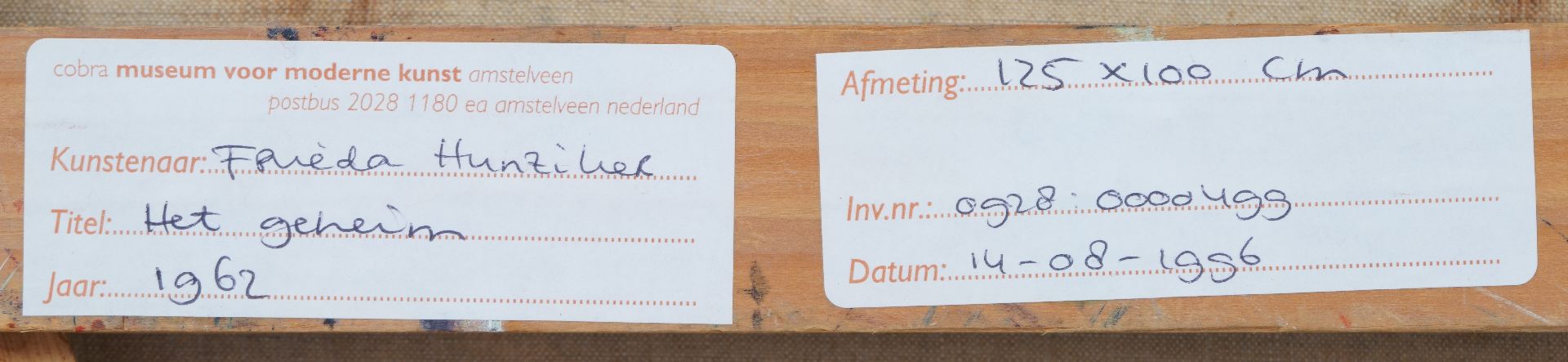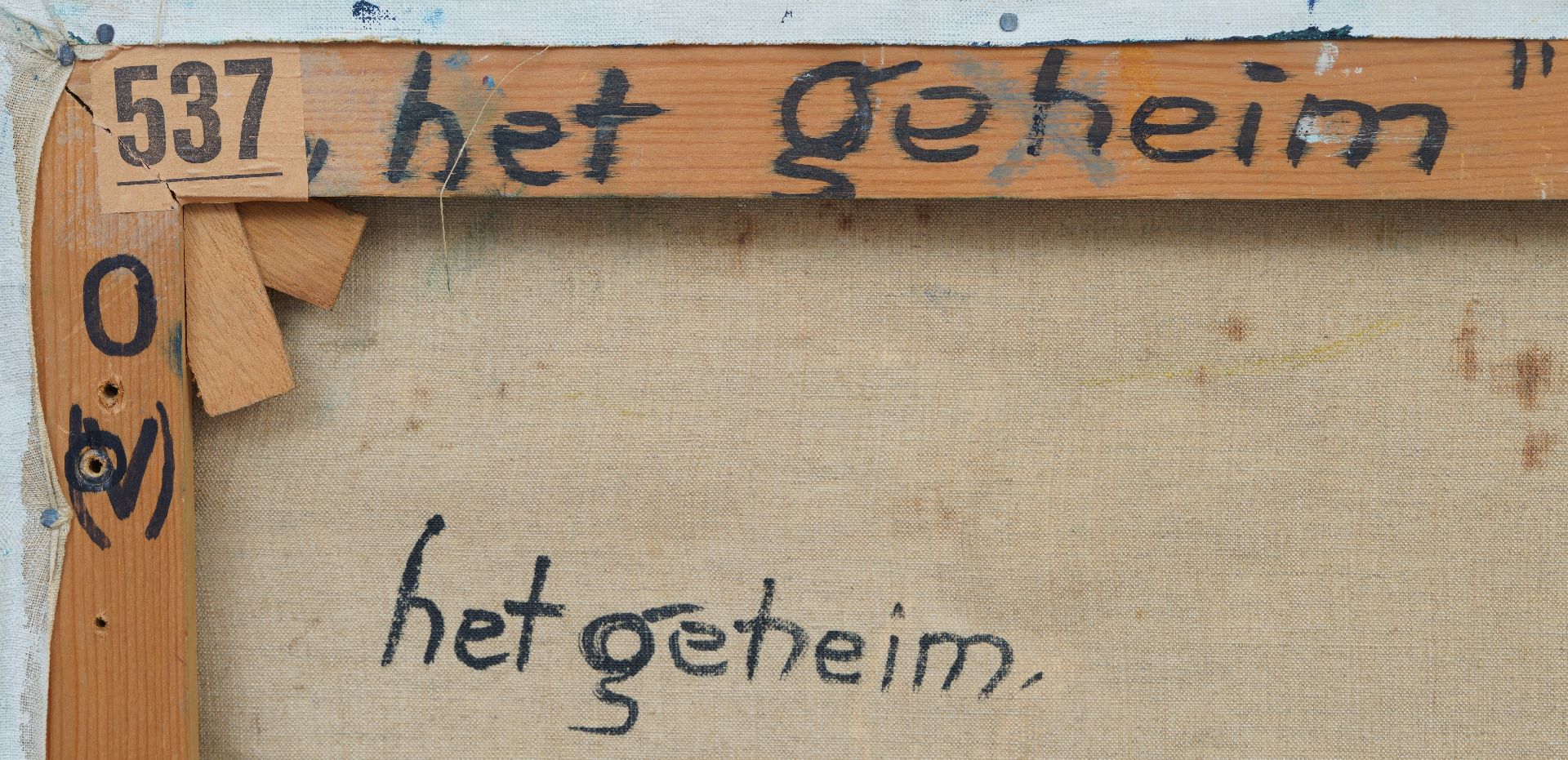 annotatie annotatie verso: 'het geheim' en op spieraam 'het geheim F. Hunziker'