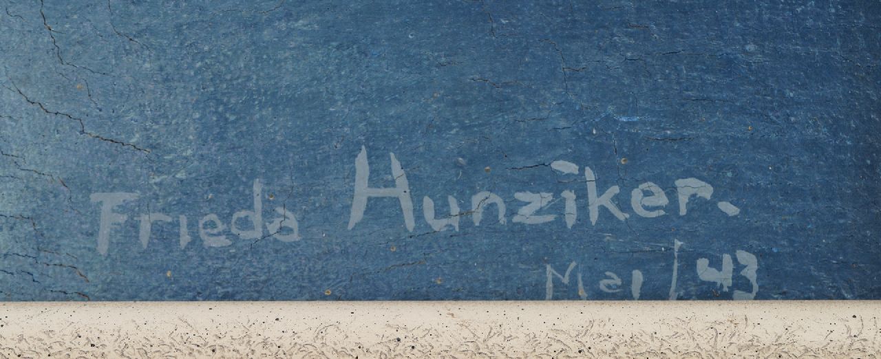 Frieda Hunziker werd in de jaren vijftig en zestig beschouwd als een opmerkelijk en vooruitstrevende kunstenares. Aanvankelijk was ze lerares tekenen totdat ze in de jaren dertig ook zelf vrij begon te werken. Haar vroege werk kenmerkt zich door een vereenvoudigde, realistische stijl. In 1948 kwam ze tot volledige abstractie. Het jaar daarvoor was ze een van de oprichters van Vrij Beelden. Deze groep kunstenaars exposeerde regelmatig in het Stedelijk Museum in Amsterdam en nam in het streven naar non figuratie een volwaardige plaats in naast de Experimentelen en Cobra. Hunziker was de enige vrouw in de groep en tevens een van de meest actieve leden.