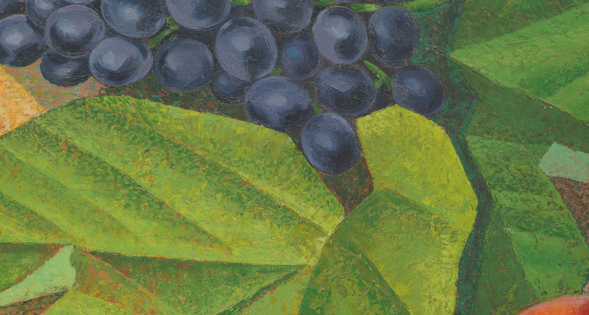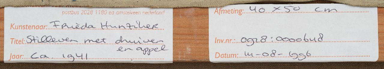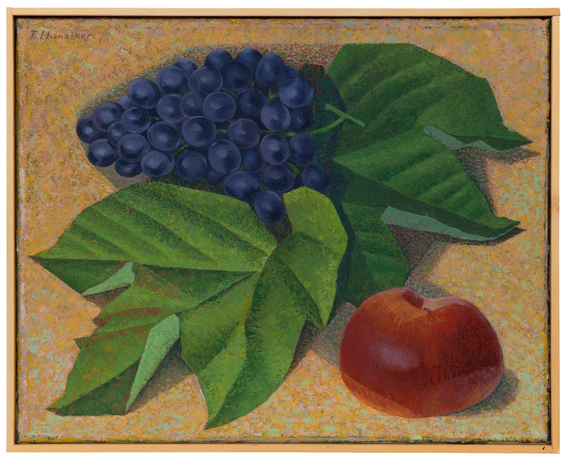 Frieda Hunziker kunstwerk • schilderij • voorheen te koop Stilleven met druiven en appel