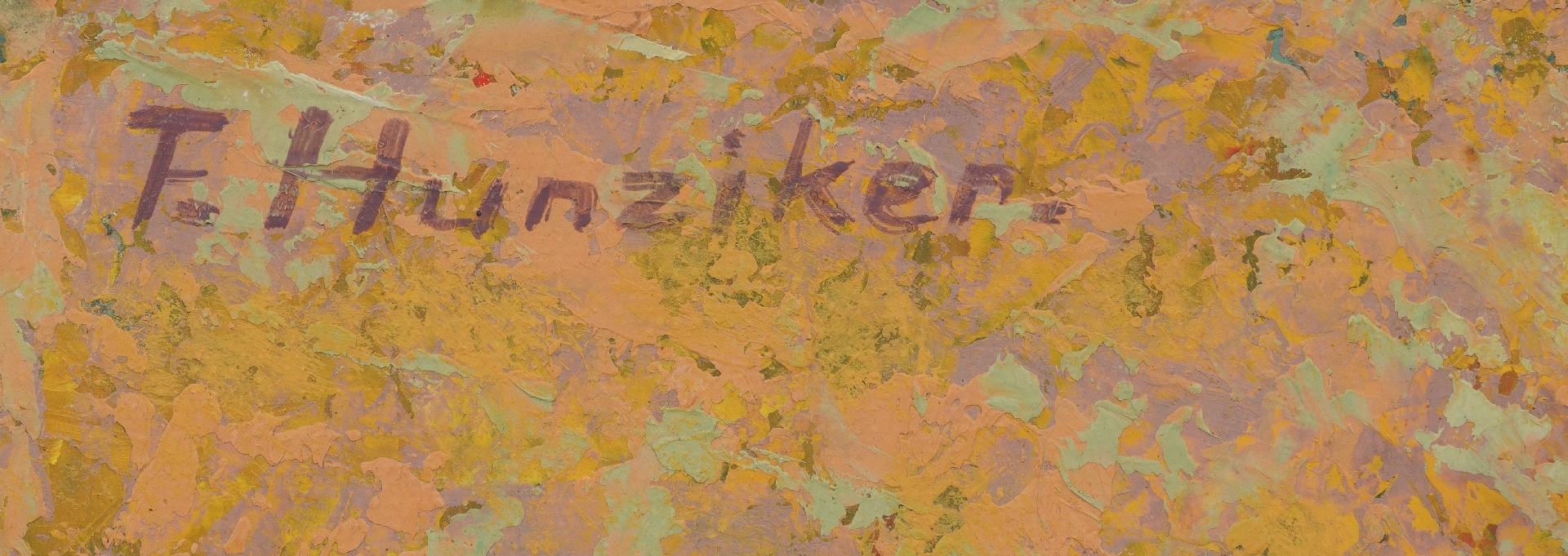 Frieda Hunziker werd in de jaren vijftig en zestig beschouwd als een opmerkelijk en vooruitstrevende kunstenares. Aanvankelijk was ze lerares tekenen totdat ze in de jaren dertig ook zelf vrij begon te werken. Haar vroege werk kenmerkt zich door een vereenvoudigde, realistische stijl. In 1948 kwam ze tot volledige abstractie. Het jaar daarvoor was ze een van de oprichters van Vrij Beelden. Deze groep kunstenaars exposeerde regelmatig in het Stedelijk Museum in Amsterdam en nam in het streven naar non figuratie een volwaardige plaats in naast de Experimentelen en Cobra. Hunziker was de enige vrouw in de groep en tevens een van de meest actieve leden.