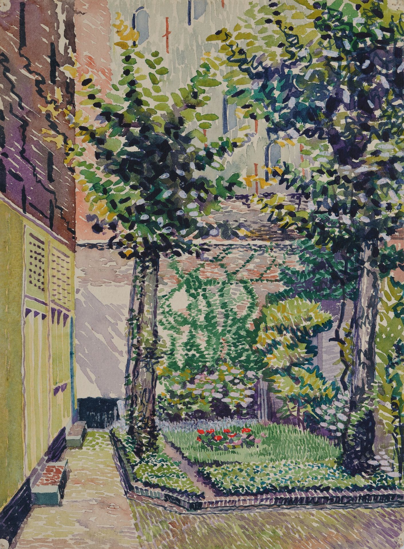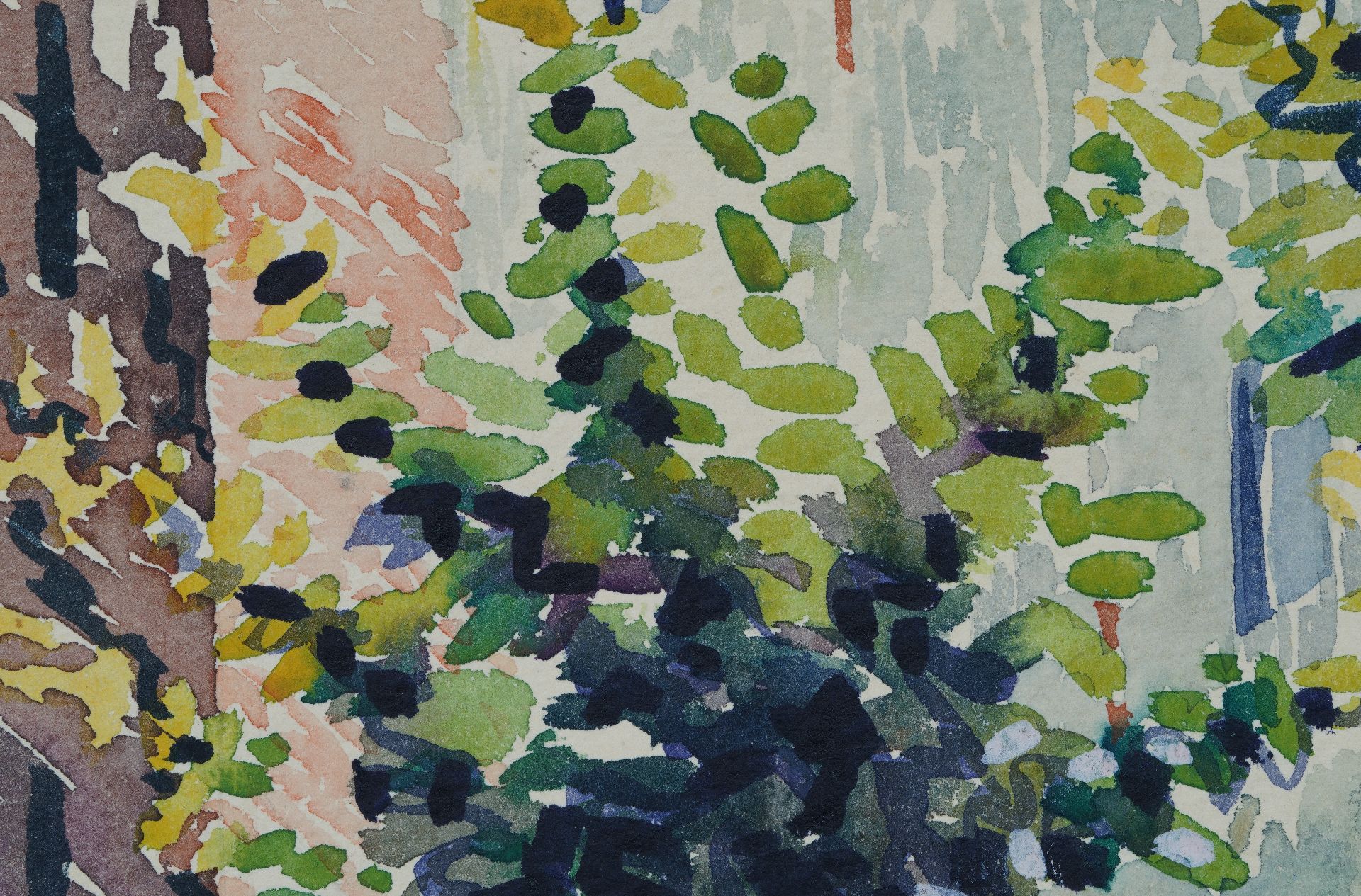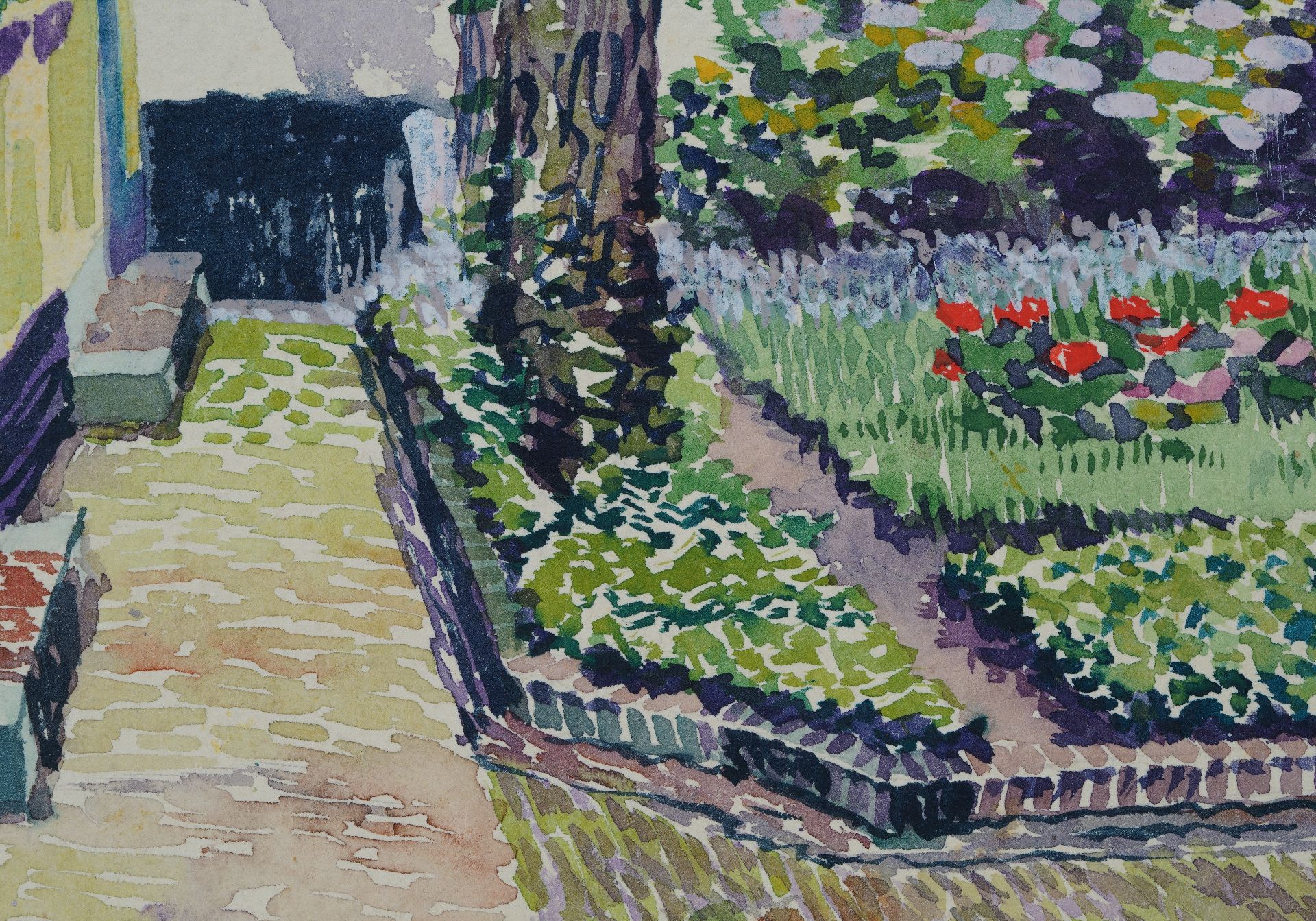 Frieda Hunziker kunstwerk • aquarel • tekening • voorheen te koop Zonnig tuintje