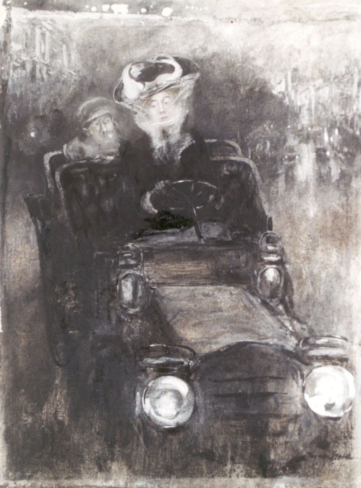 Friedrich Stahl kunstwerk • aquarel • tekening • voorheen te koop Mevrouw chauffeert