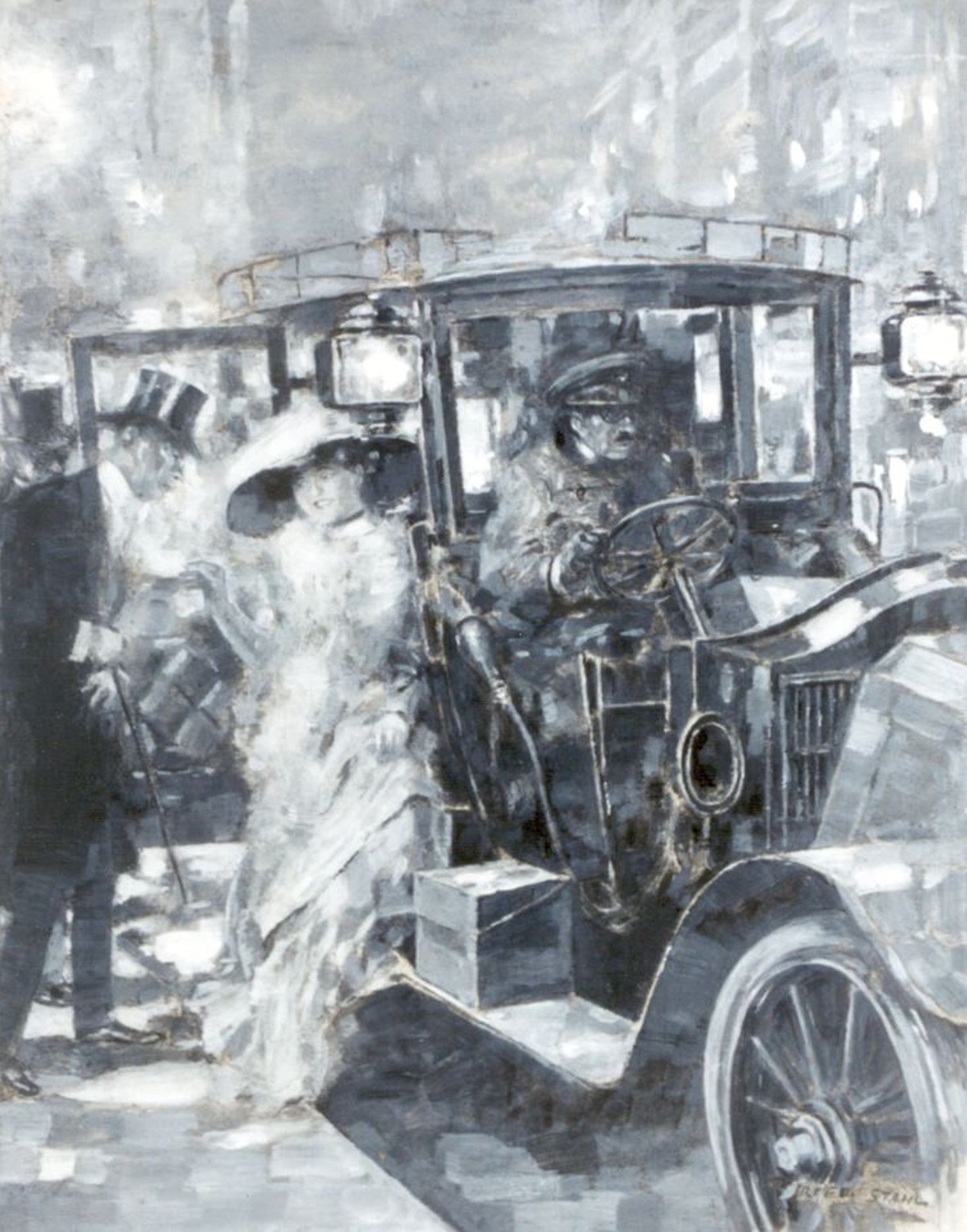 Stahl F.  | Friedrich Stahl, Naar het theater, gouache op karton 17,5 x 22,5 cm, gesigneerd rechtsonder