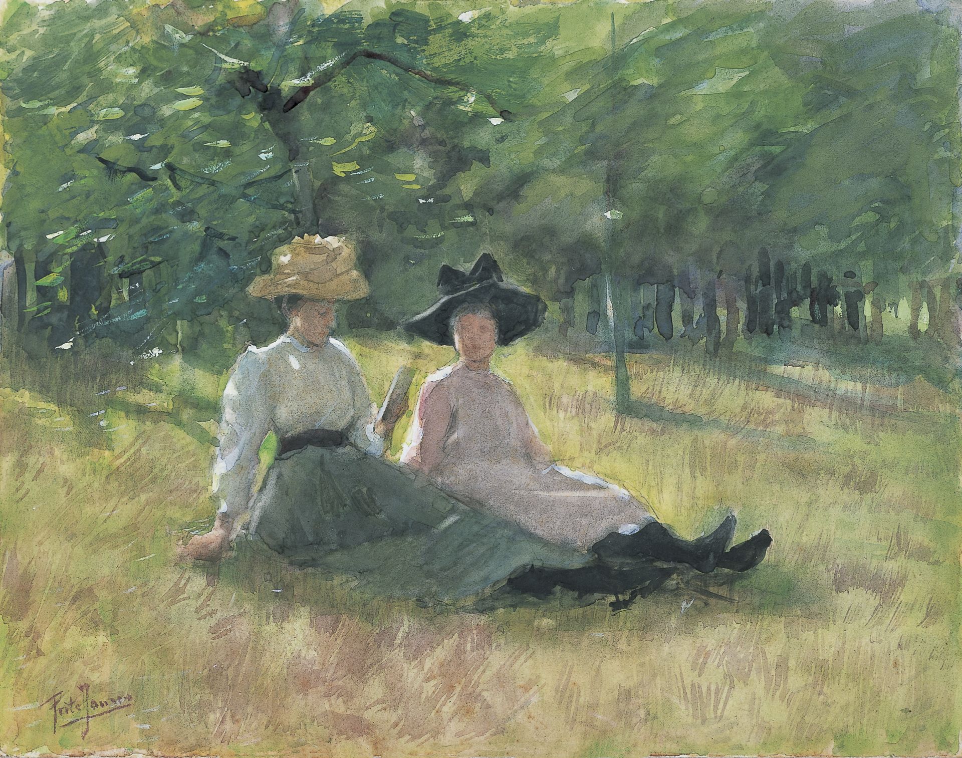 Frits Jansen kunstwerk • aquarel • tekening • voorheen te koop Zomermiddag in het bos